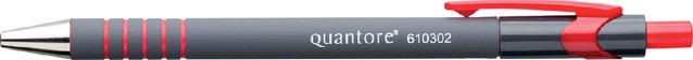 De Quantore rubbergrip drukknop rood medium balpen is een ideale keuze voor zowel zakelijke bedrijven als particulieren. Deze balpen combineert schrijfcomfort met stijl en functionaliteit. De rubberachtige houder ligt prettig in de hand en biedt extra grip, waardoor langdurig schrijven zonder vermoeidheid mogelijk is. Dankzij de drukknopmechaniek is de pen altijd klaar voor gebruik. De kunststof clip maakt het eenvoudig om de pen mee te nemen. De dop en punt zijn uitgevoerd in de schrijfkleur, wat zorgt voor een uniforme uitstraling. Met een royale schrijfbreedte van 1,0 mm levert deze balpen een duidelijke, vloeiende rode lijn, perfect voor dagelijks gebruik op kantoor, school of thuis.