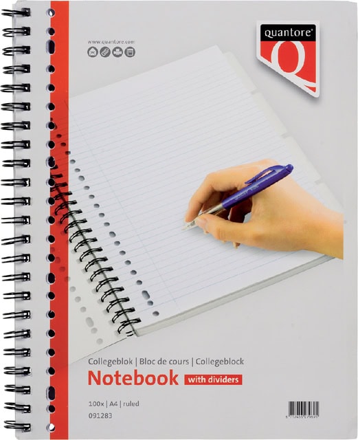 Collegeblok Quantore A4 lijn 23-gaats 4 tabs 100vel 70gr