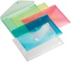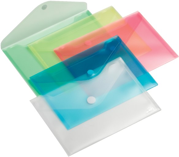 Transparante enveloptas met klittenbandsluiting, verpakt per 10 stuks.