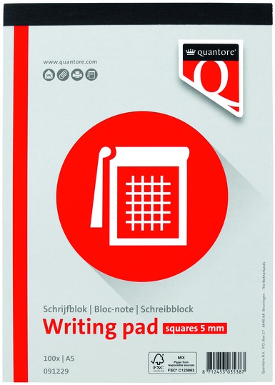 Schrijfblok Quantore A5 ruit 5mm 100vel 60gr