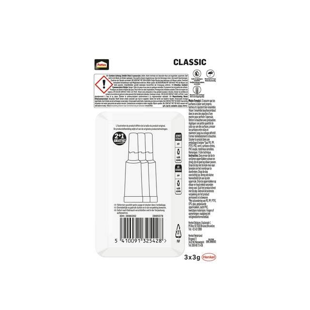Secondelijm Pattex classic 3 gram blister 2+1 gratis