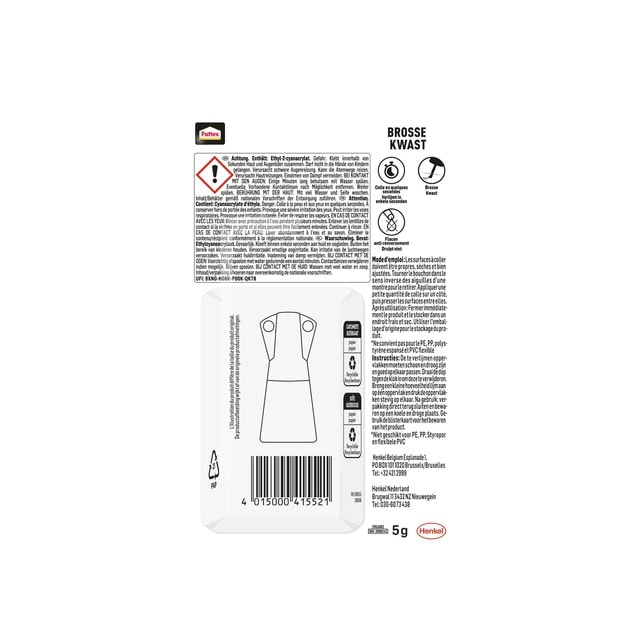 Secondenlijm Pattex met kwast flacon 5 gram op blister