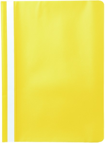 Duurzame snelhechter A4 met glashelder voorblad en gele achterzijde.