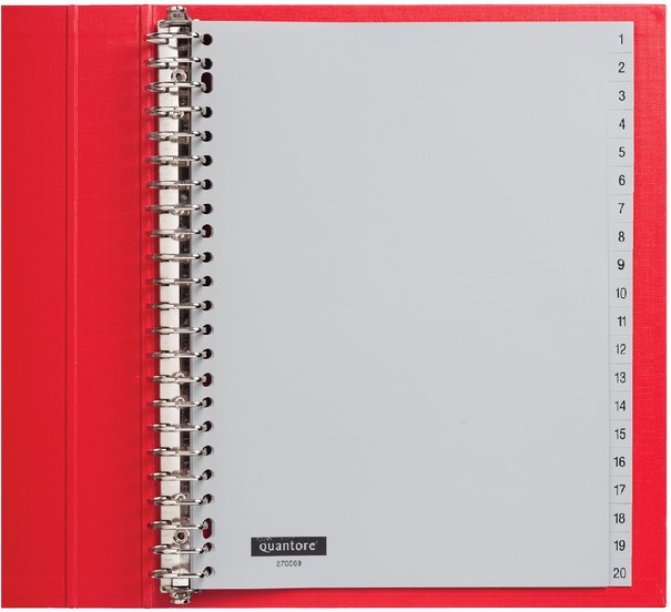 Quantore tabbladen 23-gaats, genummerd 1-20, grijs polypropyleen.