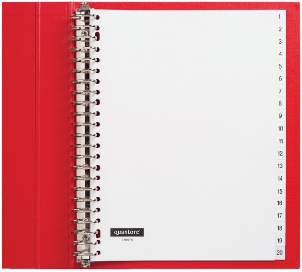 Tabbladen Quantore 23-gaats 1-20 genummerd wit PP