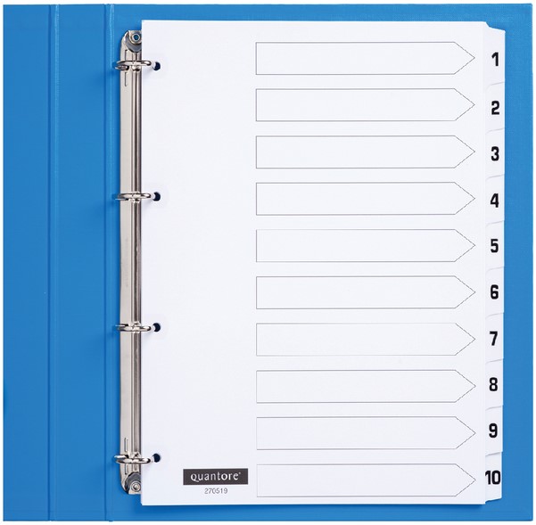 Tabbladen Quantore 4-gaats 1-10 genummerd wit karton