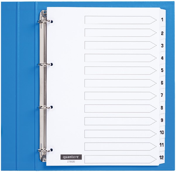 Tabbladen Quantore 4-gaats 1-12 genummerd wit karton