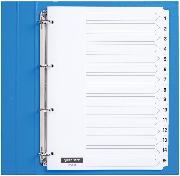 Tabbladen Quantore 4-gaats 1-15 genummerd wit karton