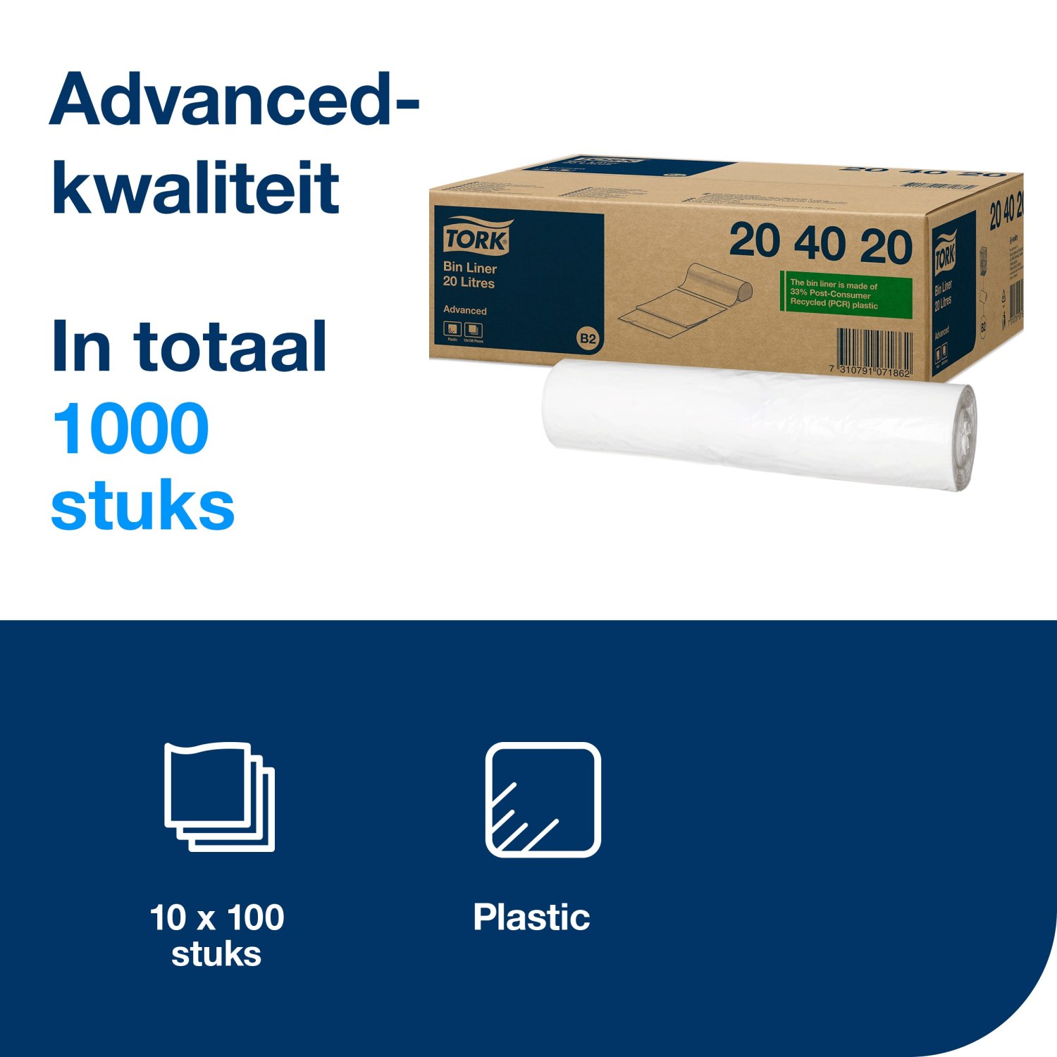 Tork Afvalzakken 20L: duurzaam, scheur- en morsbestendig.