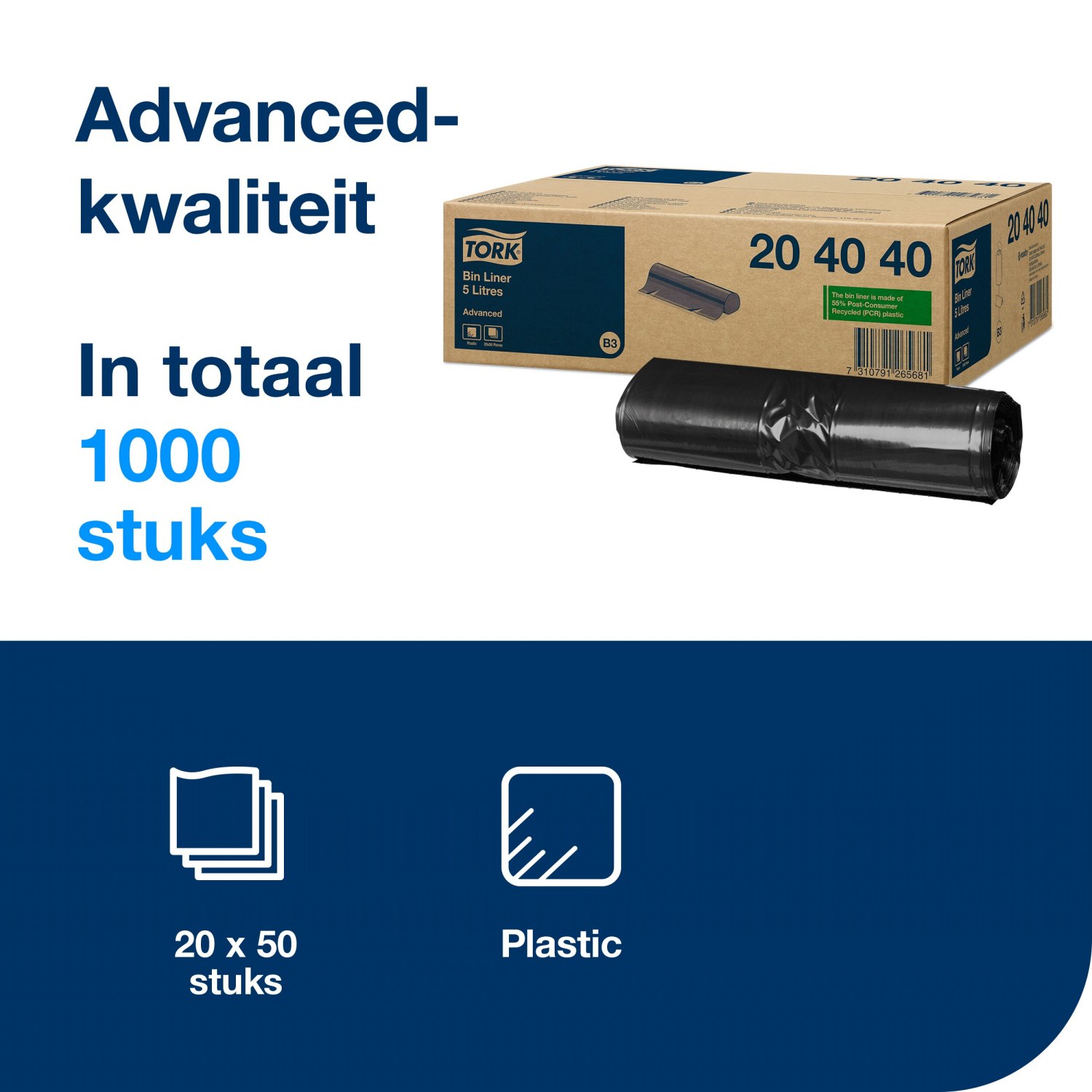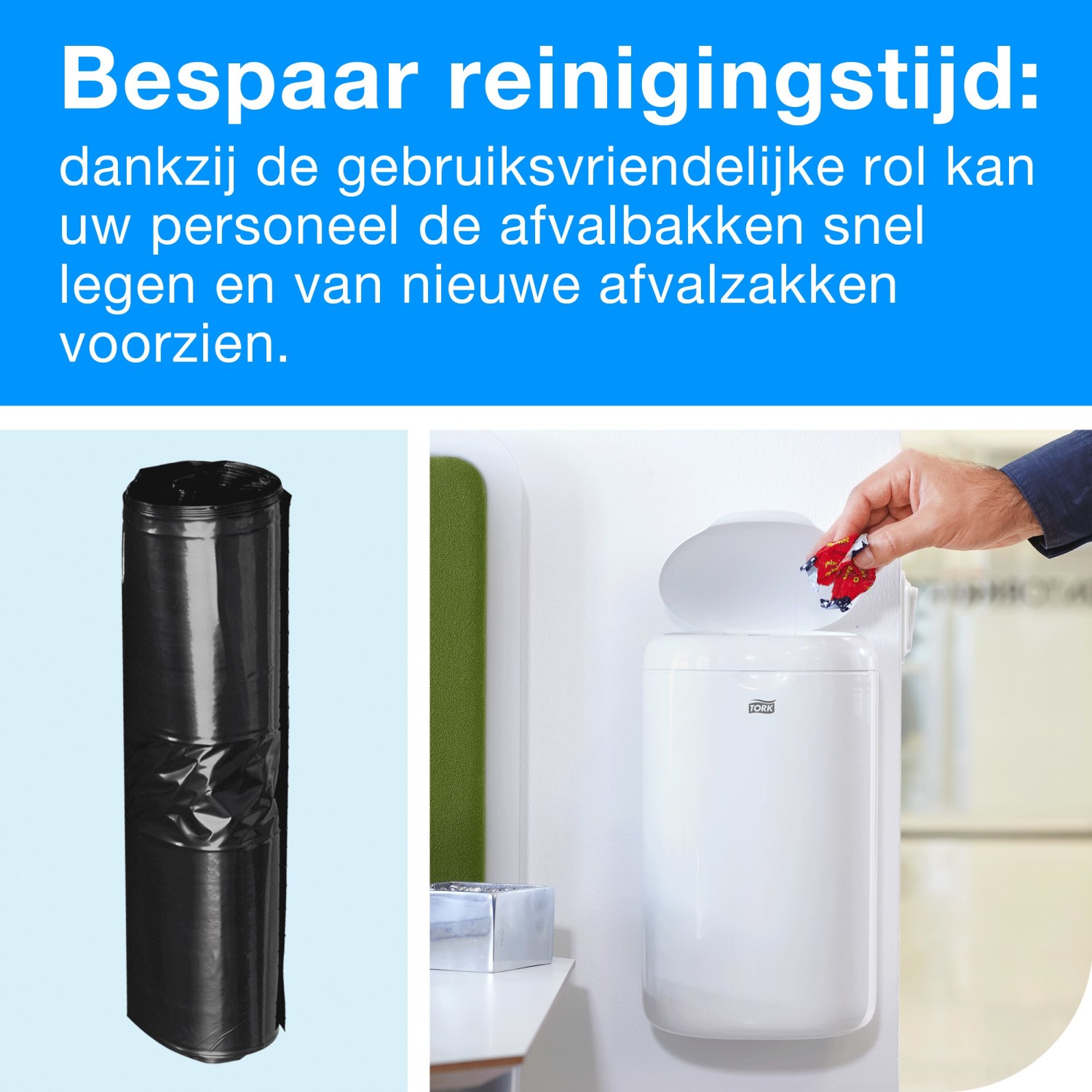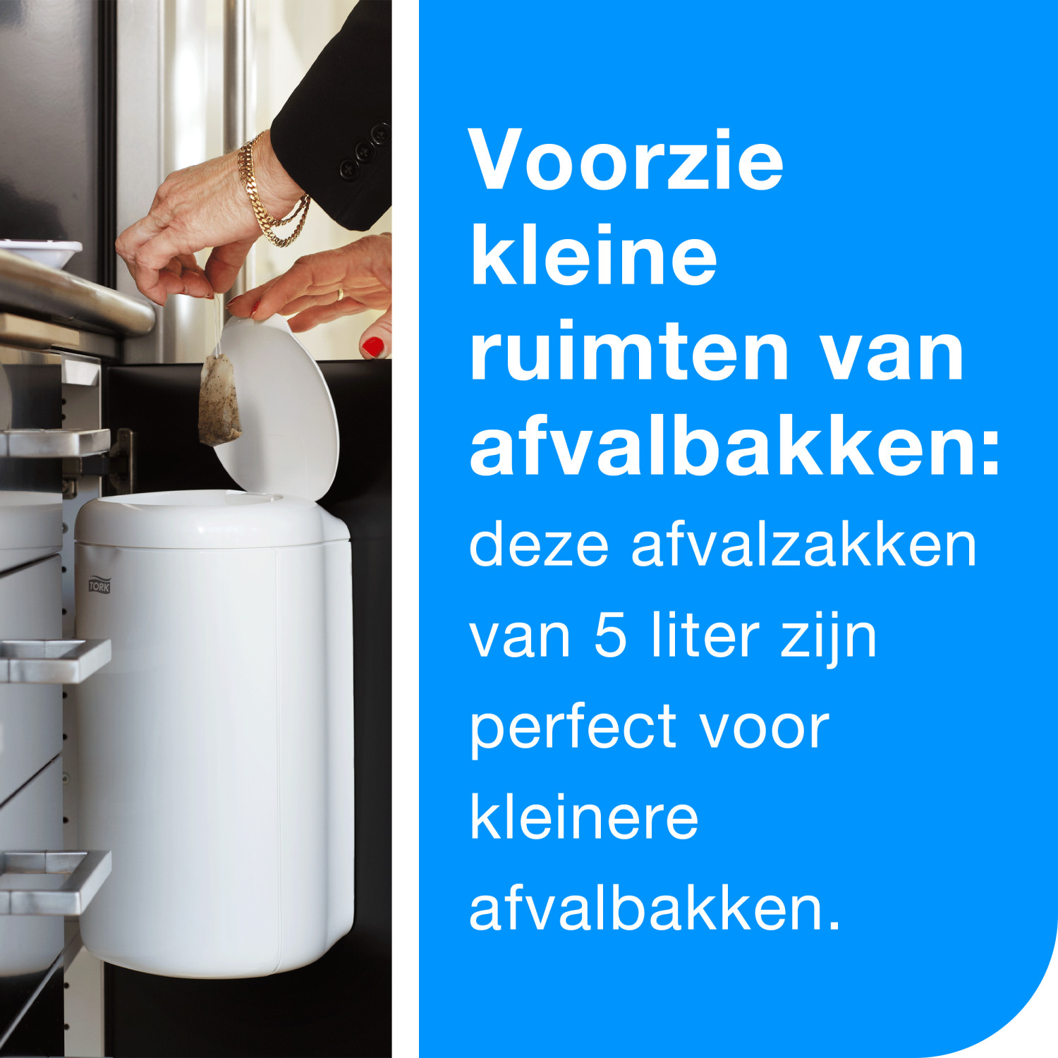 Houd ruimtes hygiënisch met Tork 5L afvalzakjes. Duurzaam en handig.