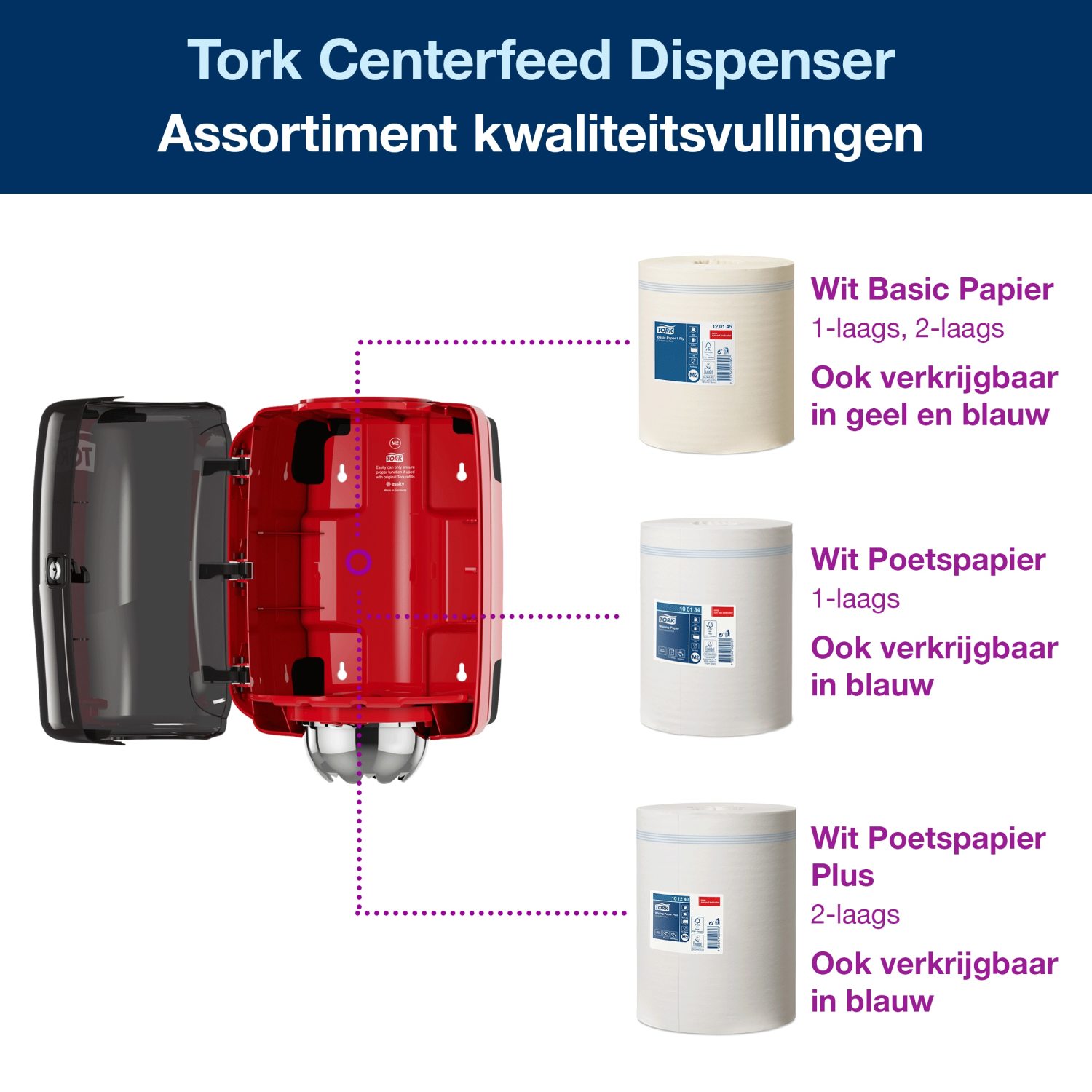 Tork Centerfeed Poetspapier Dispenser – Kunststof – Performance-Line – Zwart/rood
