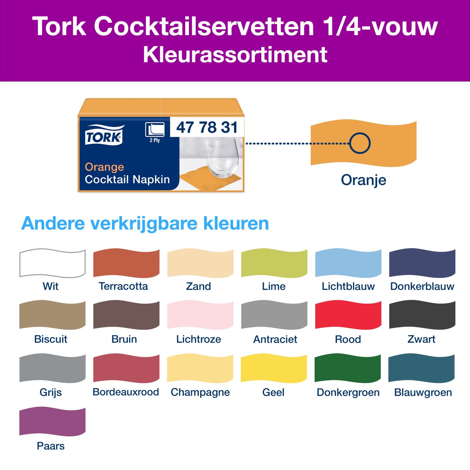 Tork Cocktailservetten zijn de perfecte aanvulling voor bars en cafés die snacks en drankjes serveren. Deze servetten zijn ontworpen om zowel functionaliteit als stijl te bieden, met een verscheidenheid aan moderne en klassieke kleuren die een levendig tintje aan elke tafel geven. Of je nu een intieme setting of een drukke bar hebt, deze servetten passen perfect bij elke gelegenheid.