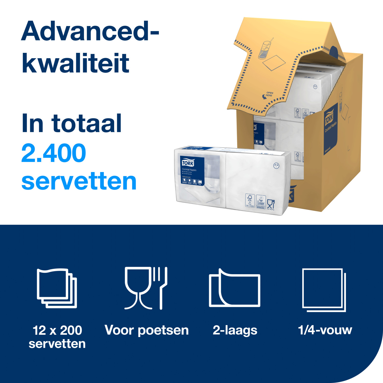 Tork Cocktailservet – Advanced – 2-laags – Wit
