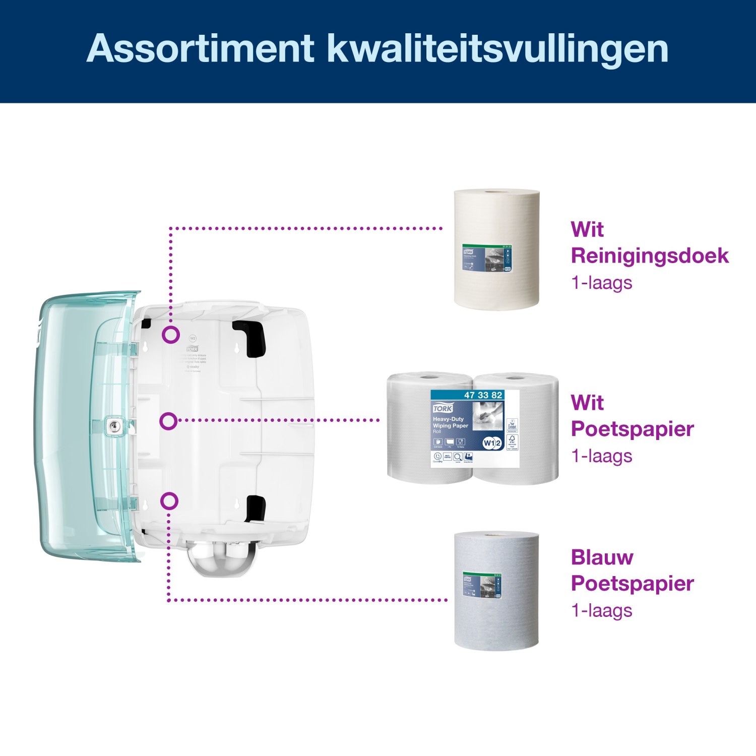 Tork Combi Rol – Dispenser Poetspapier – Metaal/Kunststof – Performance-Line – Wit/Turquoise