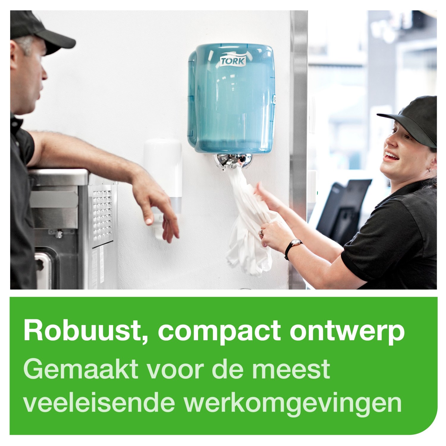 De Tork Centerfeed Dispenser is de ideale oplossing voor bedrijven en particulieren die op zoek zijn naar een robuuste en efficiënte dispenser voor intensief gebruik. Deze dispenser is ontworpen om tegen een stootje te kunnen en is eenvoudig met één hand te bedienen, wat zorgt voor snellere en efficiëntere schoonmaakprocessen. Met een hoge capaciteit is de dispenser perfect voor drukke omgevingen, waardoor personeel meer tijd overhoudt voor andere taken.