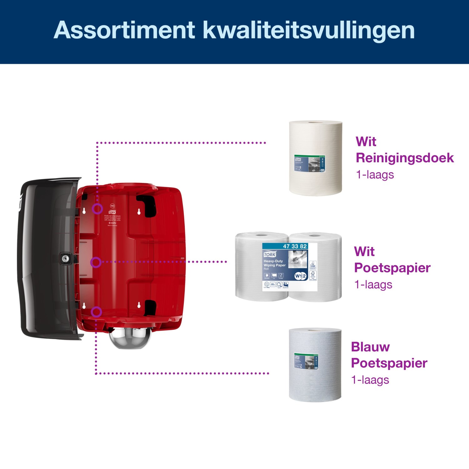 Tork Combi Rol – Dispenser Poetspapier – Metaal/Kunststof – Performance-Line – Zwart/rood