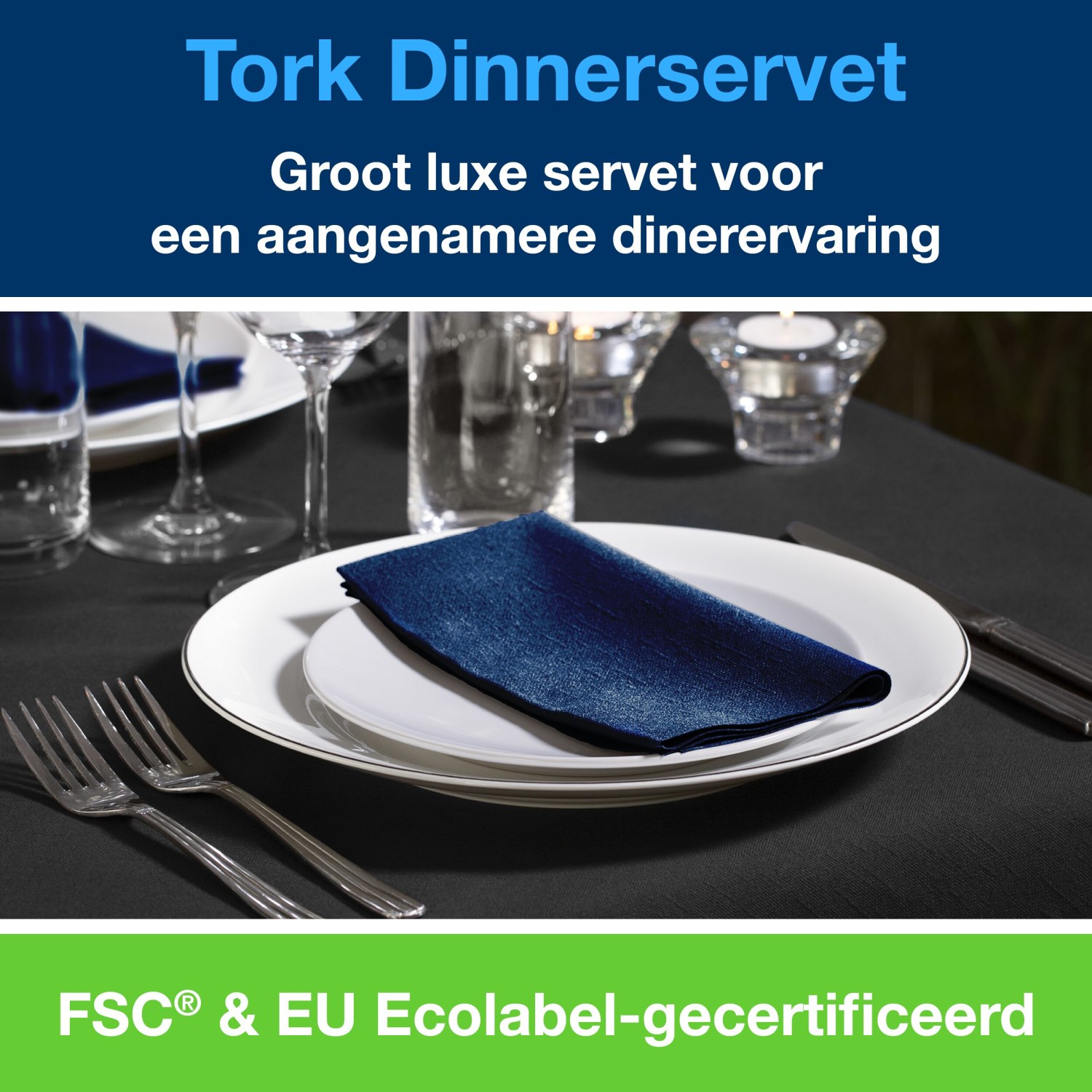 Tork Dinnerservetten: duurzame 2-laagse servetten voor horeca.