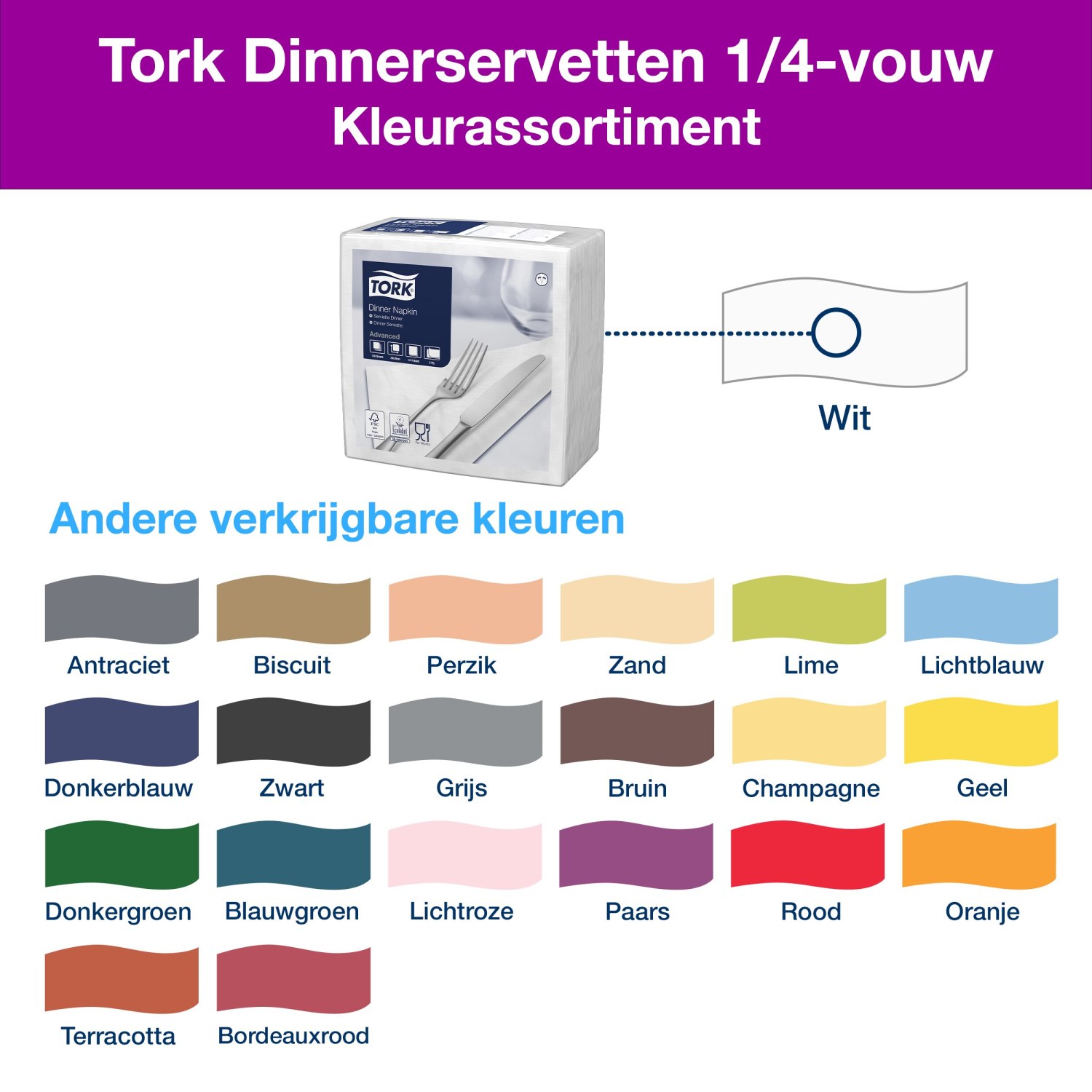 Maak indruk op uw gasten met onze Tork dinerservetten, perfect voor informele eetgelegenheden die zowel professionaliteit als functionaliteit vereisen. Met een grotere afmeting bieden deze servetten uw klanten een comfortabele eetervaring. Het ontwerp voor eenmalig gebruik maakt tijdrovend en kostbaar wassen overbodig, wat bijdraagt aan een efficiënte service.