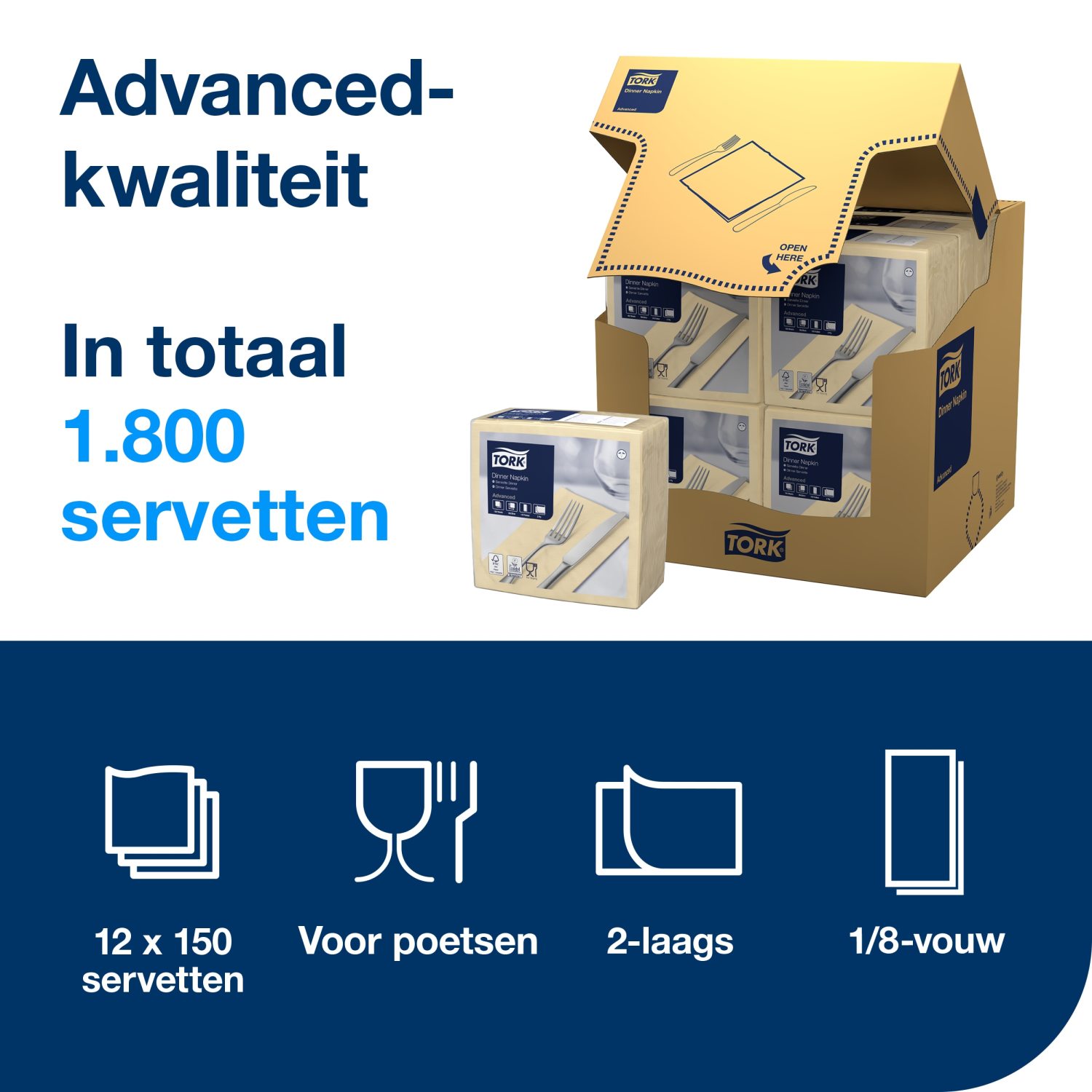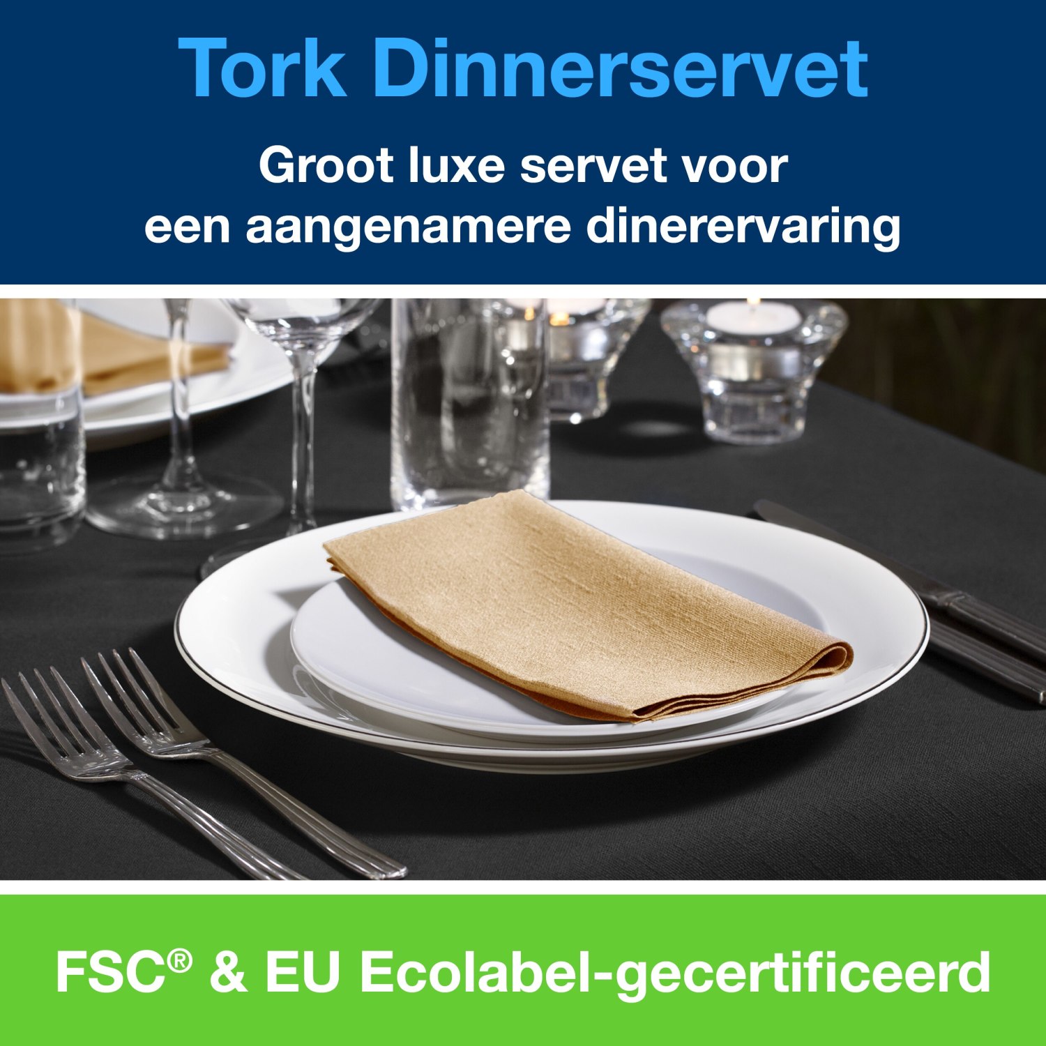 Tork Dinnerservetten: duurzame 2-laagse servetten voor horeca.