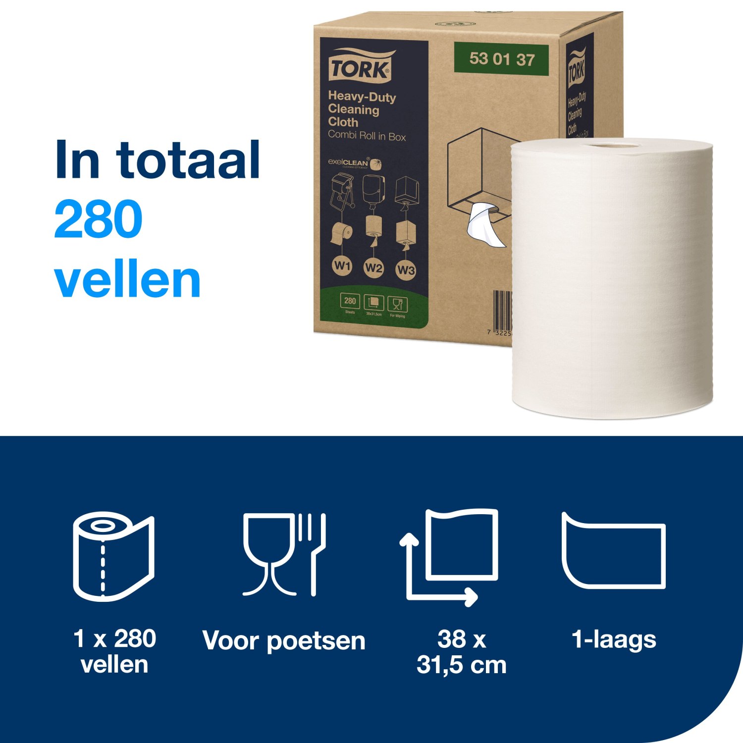 Met de mogelijkheid om de doeken te gebruiken in combinatie met de vloerstandaard- en muurdispenser, of de Tork Boxed Combi Rol- of Maxi Centerfeed-dispenser, die eenvoudig met één hand te bedienen is, verhoogt u de efficiëntie van uw schoonmaakwerkzaamheden. De doeken zijn verkrijgbaar in een handige verpakking van 100 stuks, wat zorgt voor een langdurige voorraad en gebruiksgemak.
