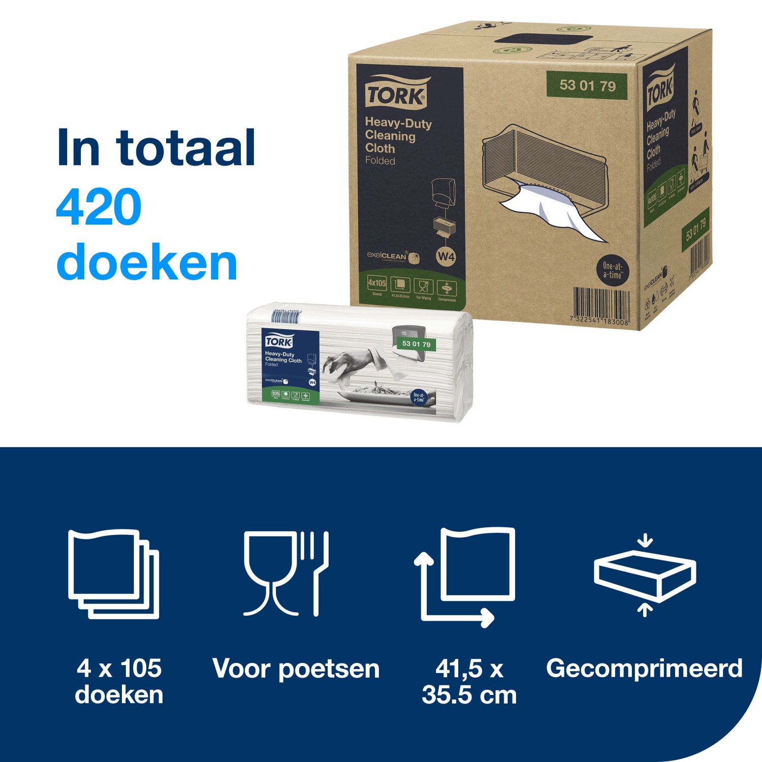 Tork Heavy-Duty Reinigingsdoek – Gevouwen – 41,5×35,5cm – 1-laags – Wit