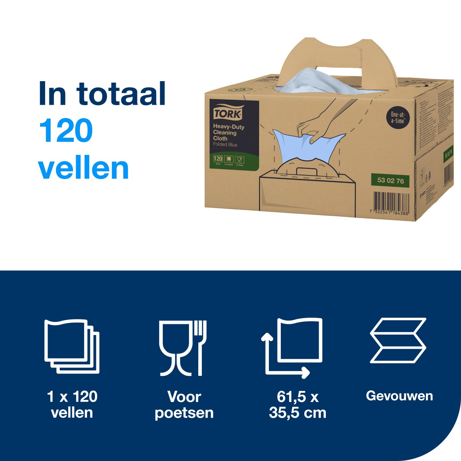 Tork Heavy-Duty – Reinigingsdoek XL Handy Box – 61,5×35,5cm – 1-laags – Blauw