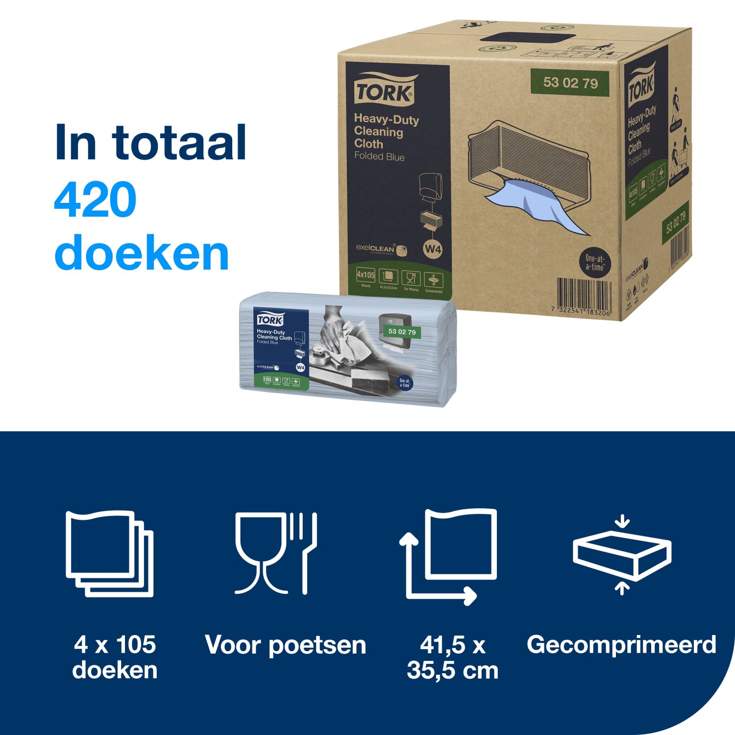 Tork Heavy-Duty – Reinigingsdoek XL Handy Box – 41,5×35,5cm – 1-laags – Blauw