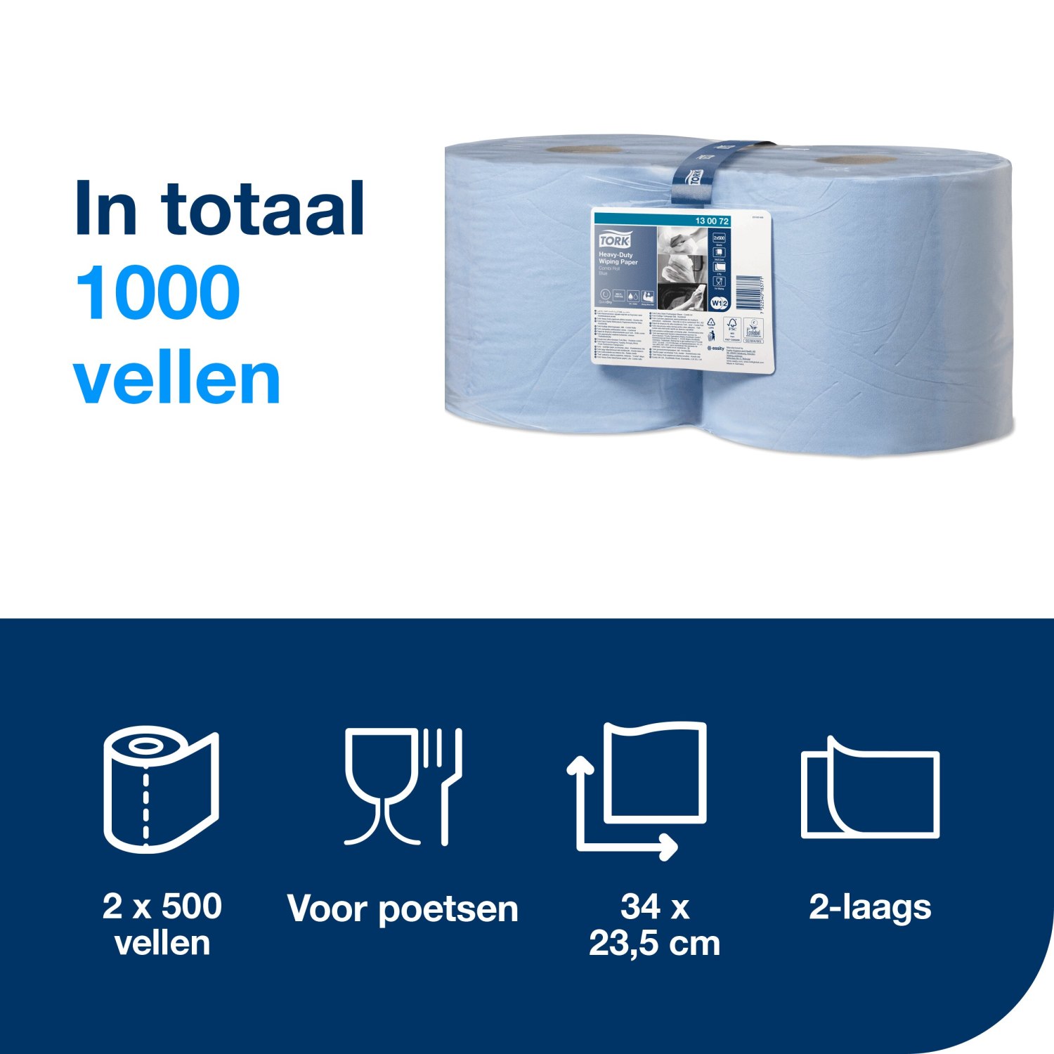 Tork Heavy-Duty – Rol – Poetspapier – 170mtr/23,5cm – 2-laags – Blauw