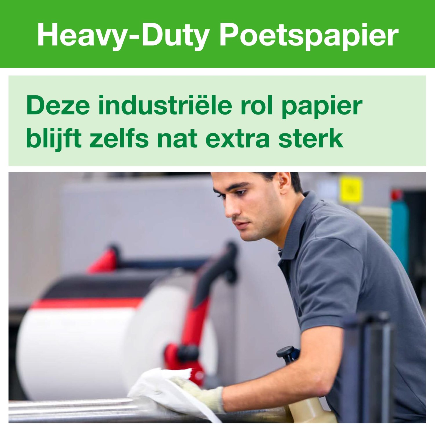 Maak kennis met ons Tork Heavy-Duty Poetspapier, ontworpen voor het snel en efficiënt opruimen van gemorste vloeistoffen. Dit 2-laags industriële papier biedt superieure sterkte en een uitstekend absorberend vermogen, waardoor u moeiteloos olie, vet, smeermiddelen en vuil kunt verwijderen. Het herhaaldelijk bruikbare papier en de efficiënte afscheurfunctie zorgen ervoor dat u nooit meer gebruikt dan nodig is.
