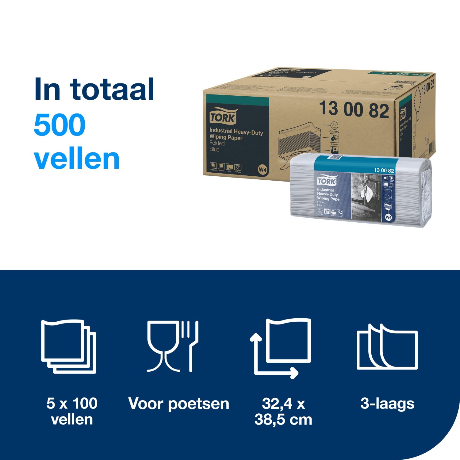 Tork Industrial Heavy-Duty – Poetspapier – 3-laags – Blauw – Gevouwen