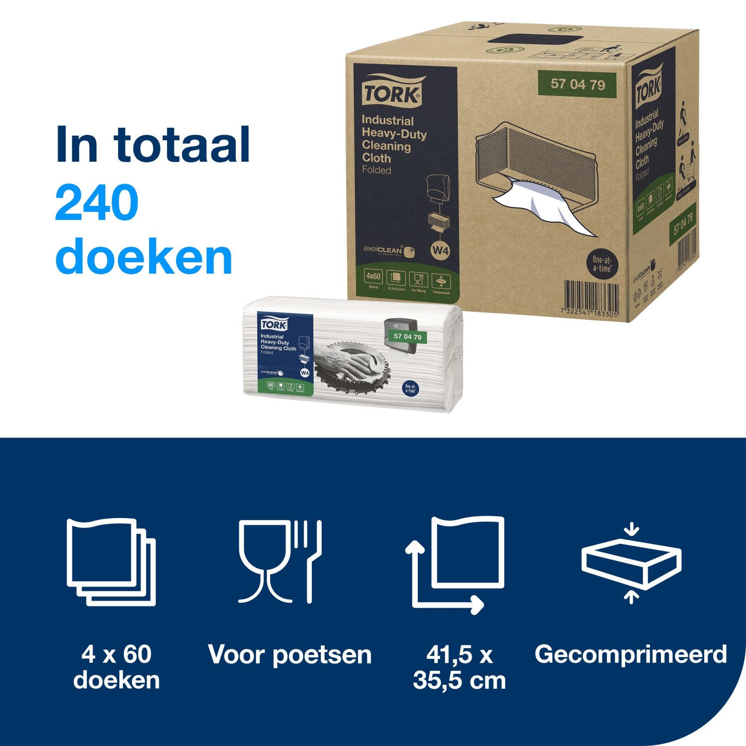 Tork Industrial Heavy-Duty Reinigingsdoek – 1-laags – Gevouwen – Wit