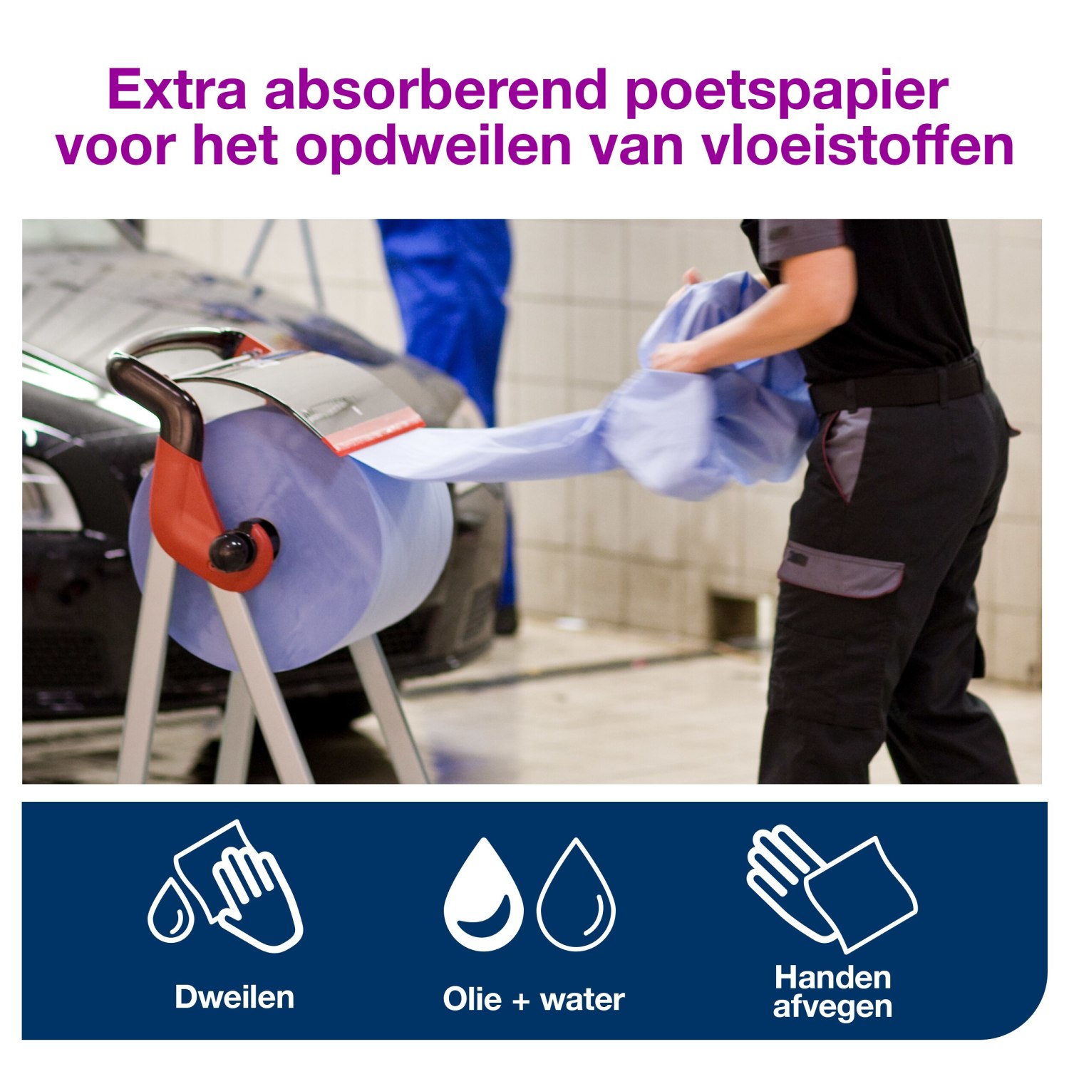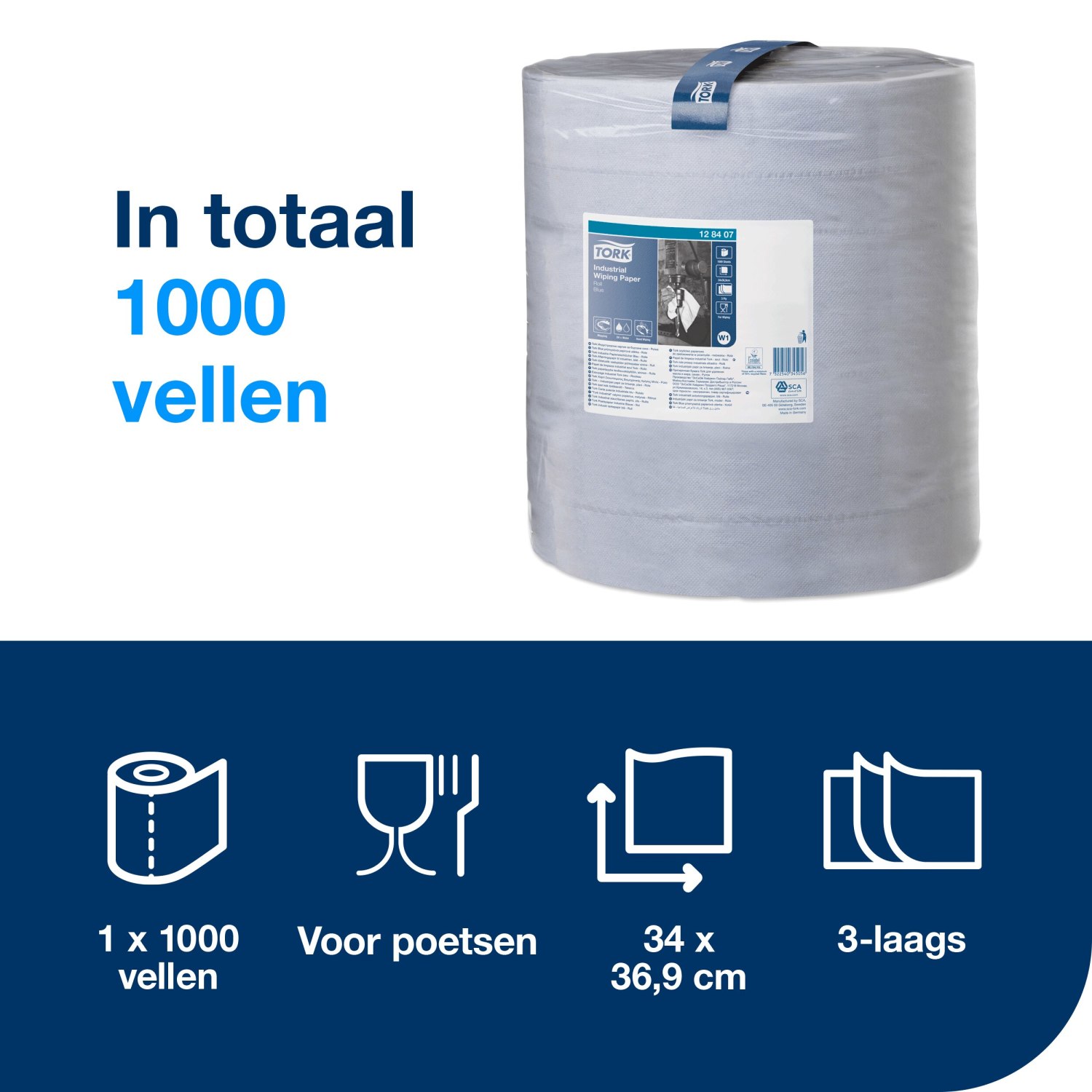 Dit sterke en betrouwbare poetspapier van Tork is ideaal voor zware reinigingstaken. Het absorberende papier is perfect voor het opnemen van gemorste vloeistoffen en het afvegen van handen, waardoor gebruikers minder tijd en moeite kwijt zijn. De blauwe rollen met hoge capaciteit zijn ontworpen om langer mee te gaan, wat zorgt voor een aanzienlijke tijdsbesparing voor uw personeel.
