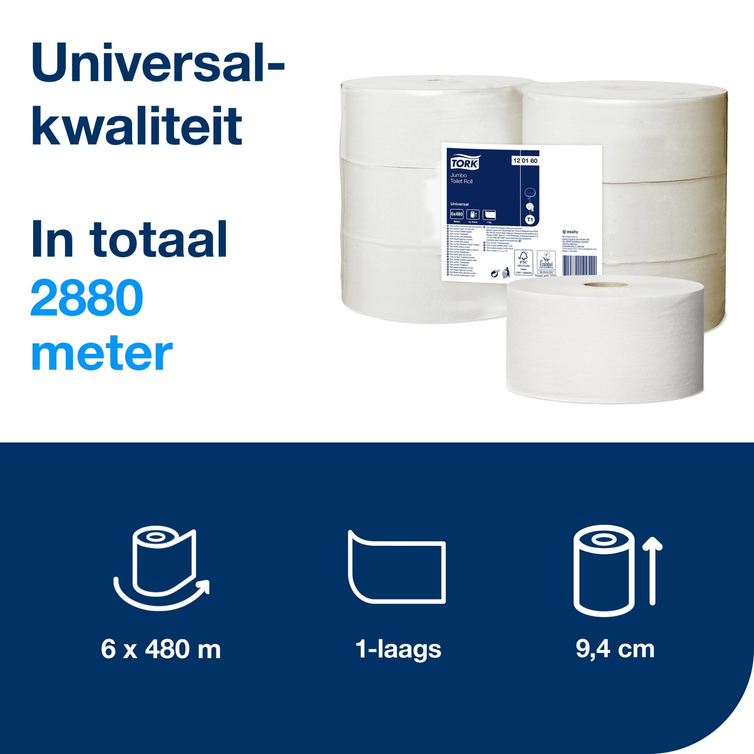 Tork Jumbo – Toiletpapier – Universal – 480mtr/10cm – 1-laags -Wit