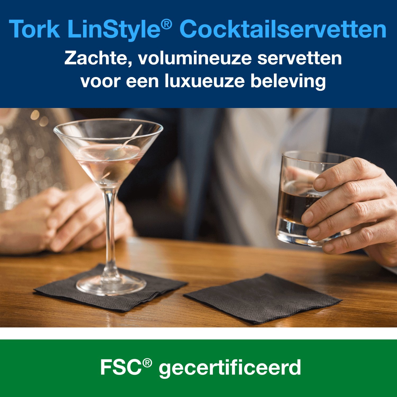 Tork Linstyle® cocktailservetten: luxe voor hapjes en drankjes.