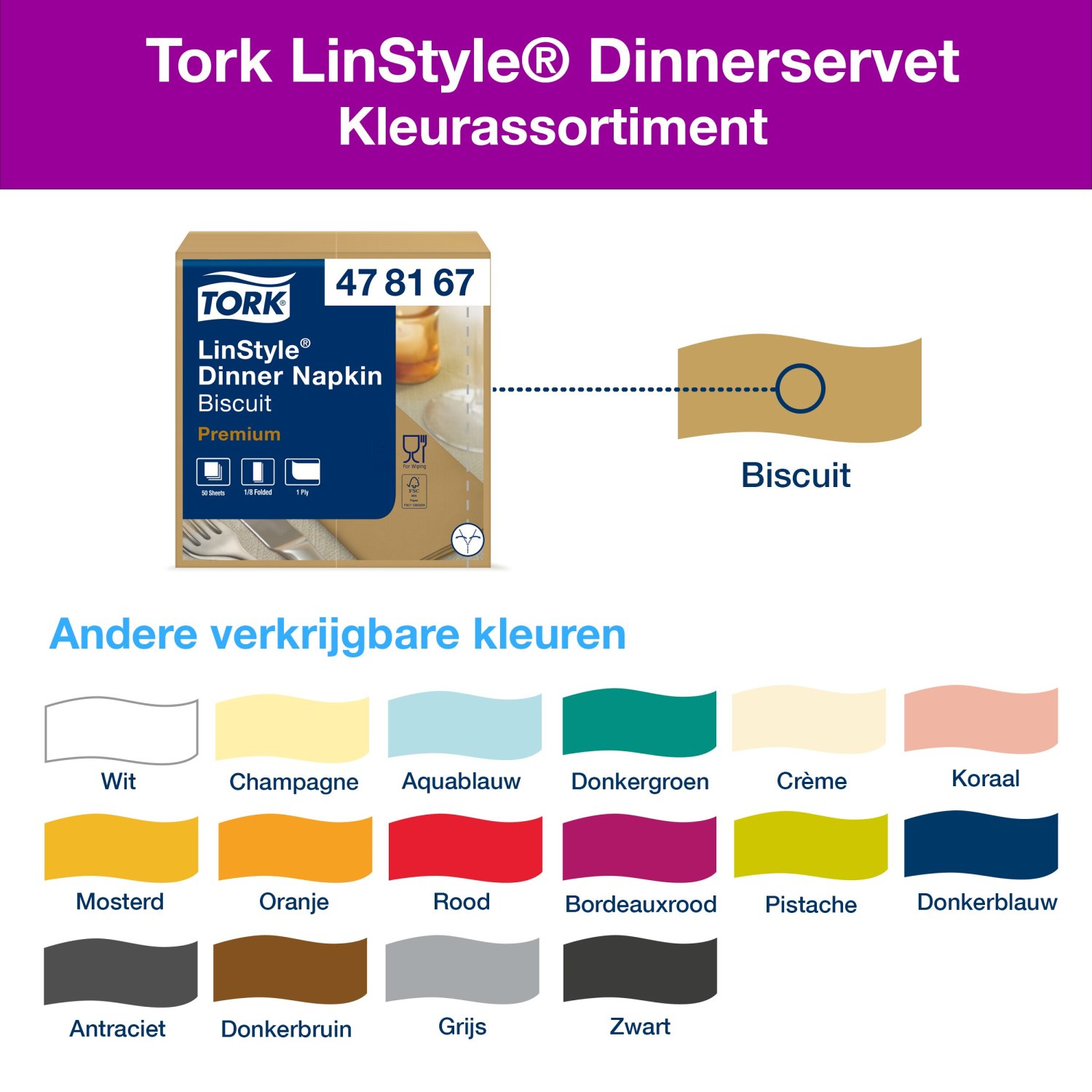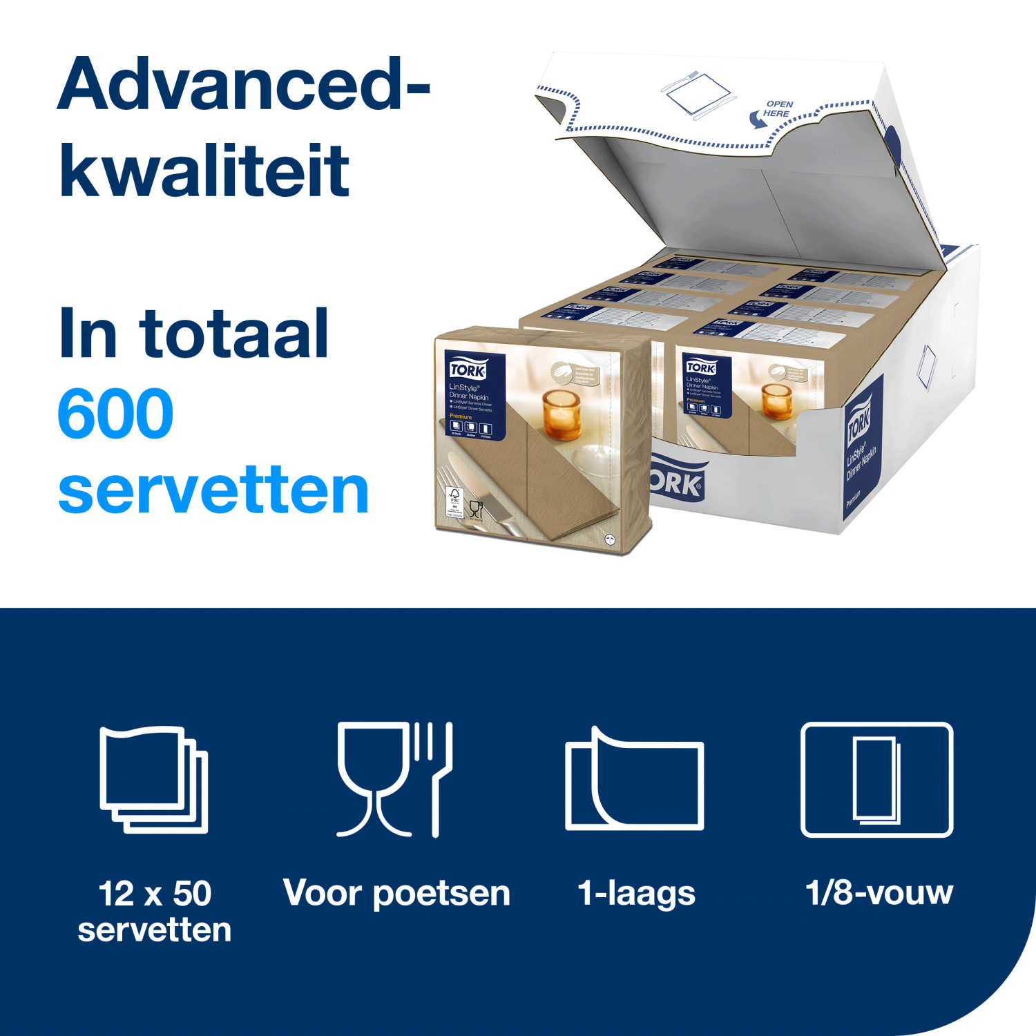 Tork LinStyle – Dinnerservet – Premium – 39x39cm – 1/8-vouw – 1-laags – Biscuit