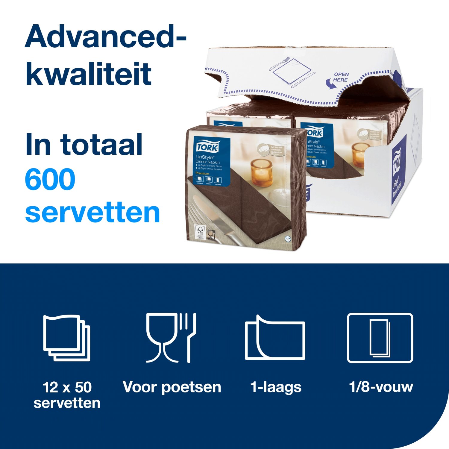 Tork LinStyle® servetten: luxe, zacht, dik en absorberend.