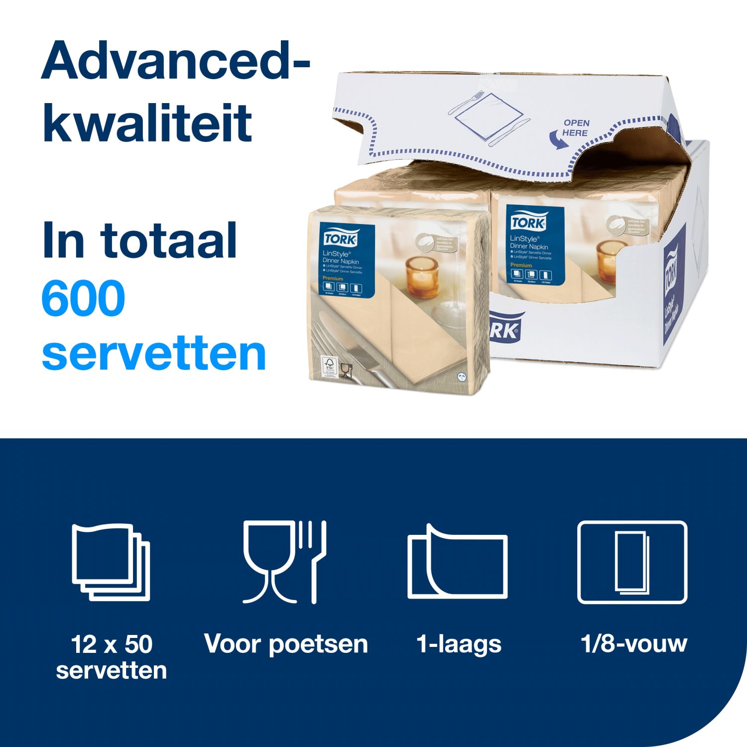 Met een 1/4 vouw en het FSC-keurmerk zijn deze servetten een uitstekende keuze voor restaurants die indruk willen maken op hun gasten. Tork LinStyle servetten worden geleverd in een verpakking van 600 stuks, bestaande uit 12 pakken met elk 50 servetten, waardoor ze zowel geschikt zijn voor bedrijven als particulieren die waarde hechten aan kwaliteit en presentatie.