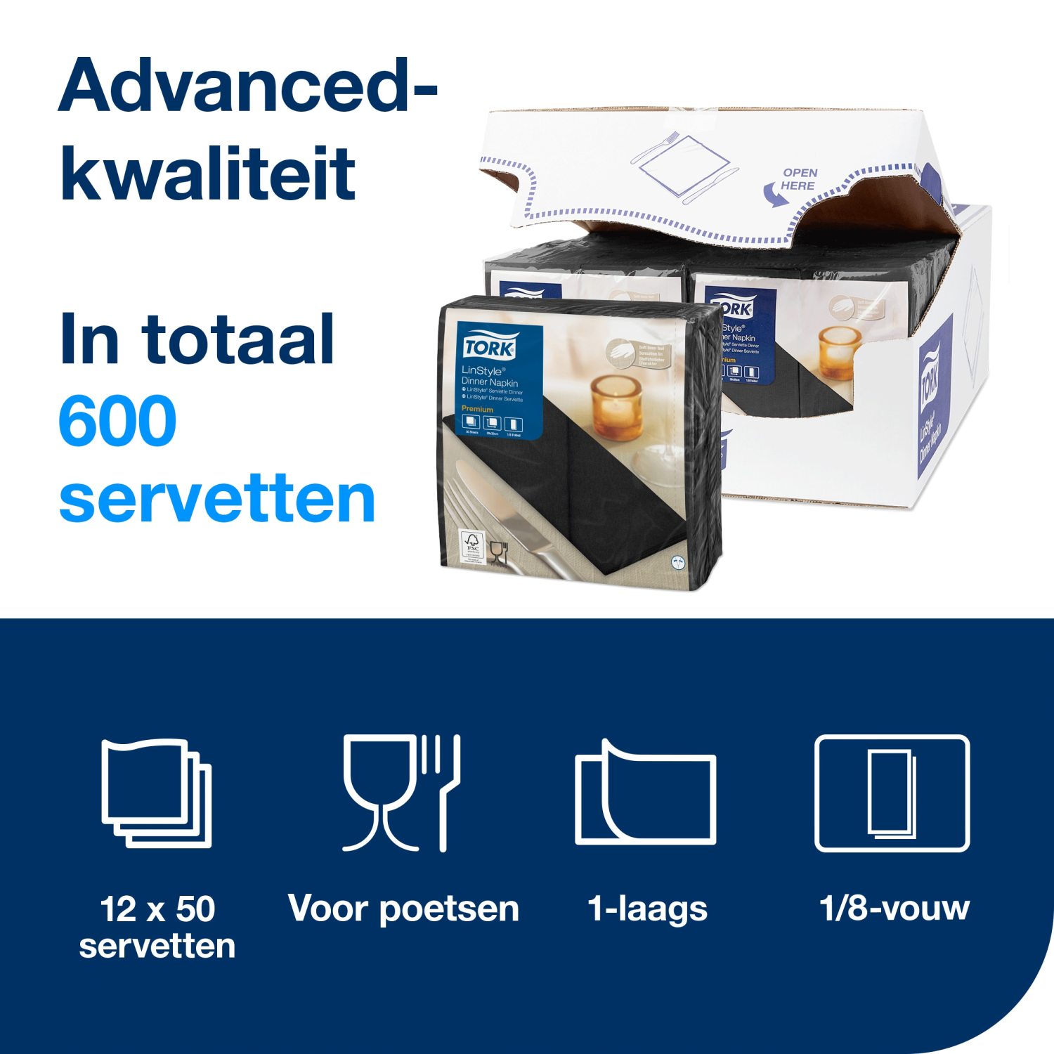 Tork LinStyle – Dinnerservet – Premium – 39x39cm – 1/8-vouw – 1-laags – Zwart