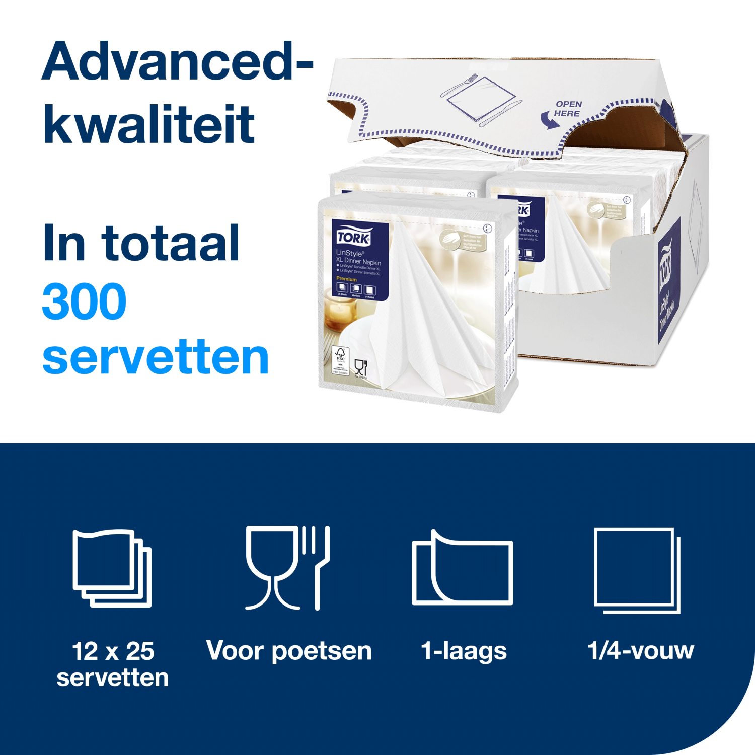 Tork LinStyle – Dinnerservet XL – 1-laags – Wit