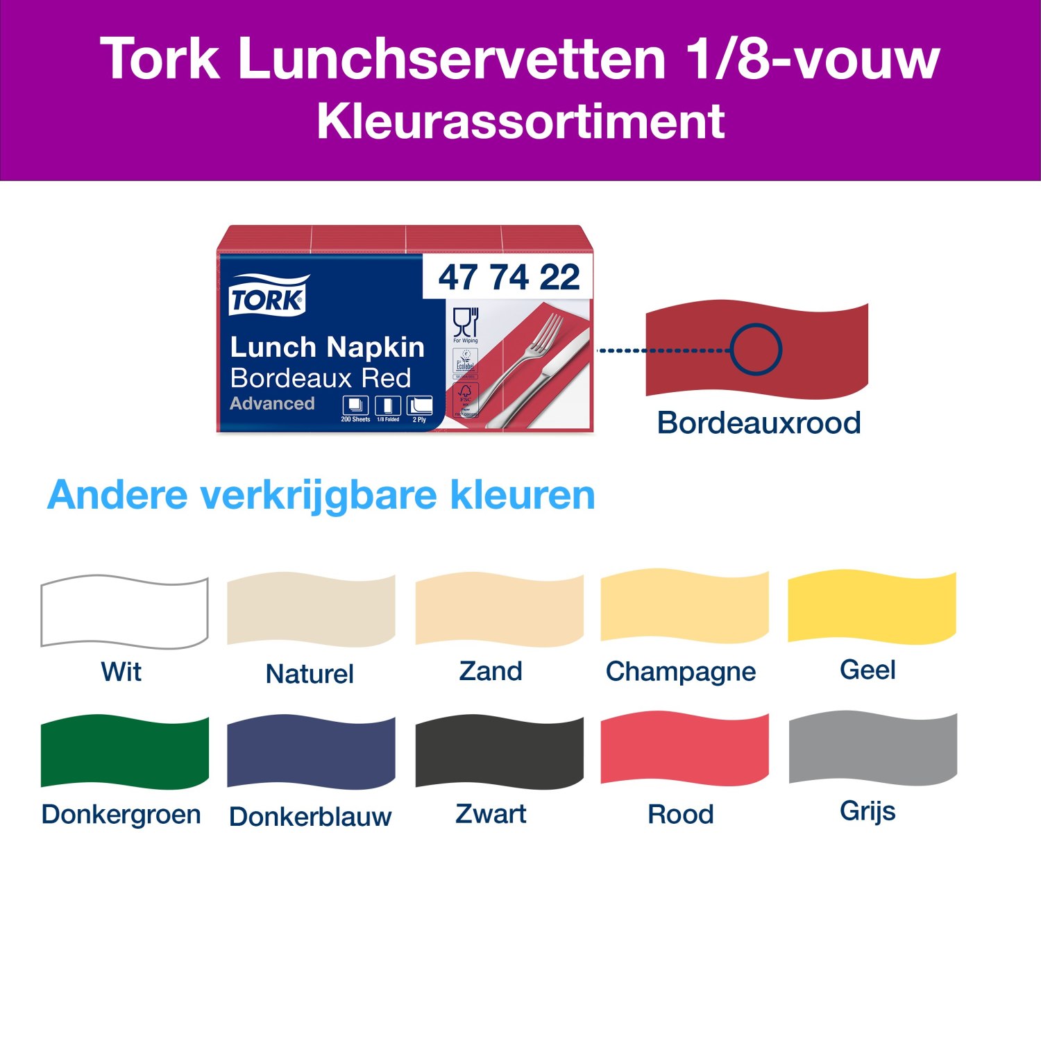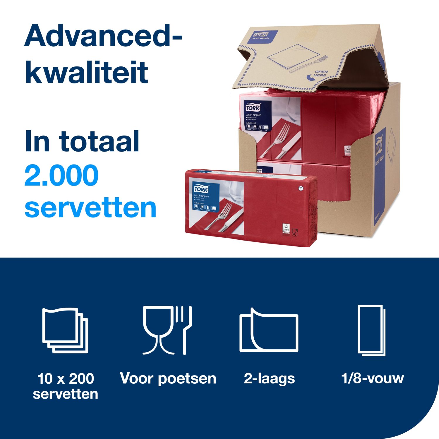 Tork Lunchservetten: duurzame, 2-laags voor lichte maaltijden.