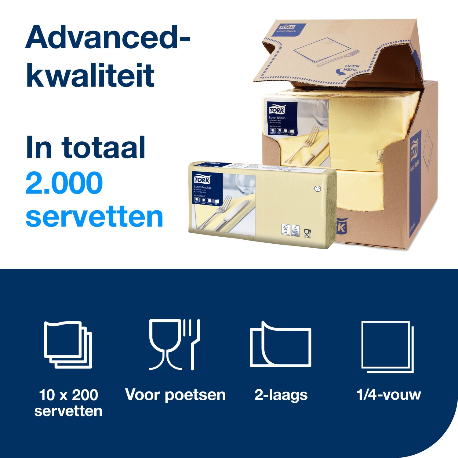 Tork Lunchservet – Advanced – 33x33cm – 1/4-vouw – 2-laags – Champagne