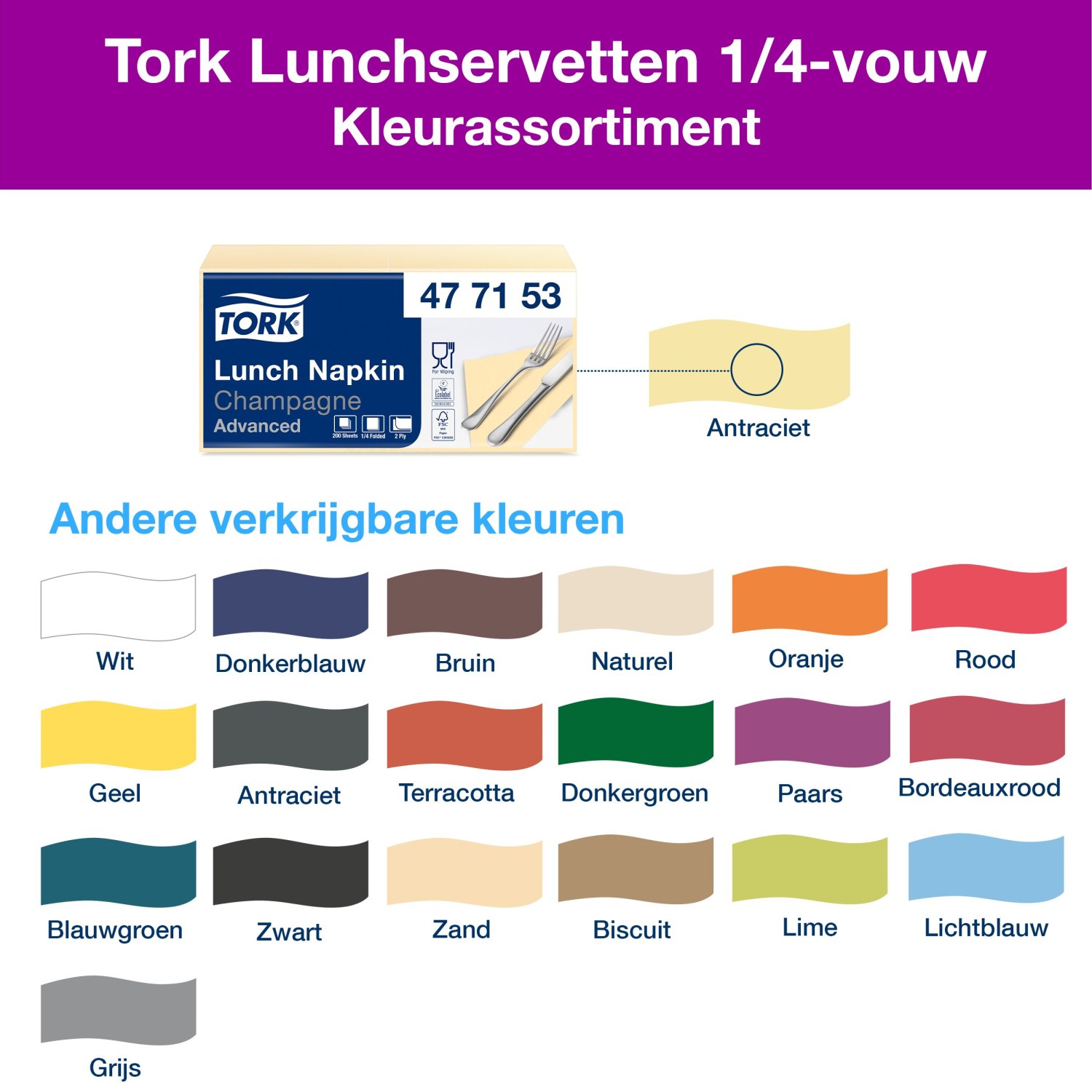 U heeft de keuze uit een groot assortiment eigentijdse en klassieke kleuren, zodat er altijd een servet is dat bij uw interieur past. Deze servetten worden geleverd in een verpakking van 50 stuks, waardoor ze zowel geschikt zijn voor bedrijven als voor particulieren die waarde hechten aan kwaliteit en stijl.