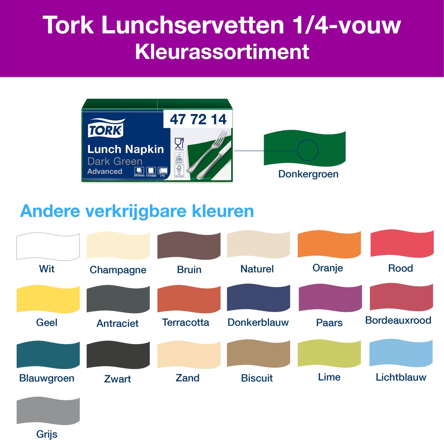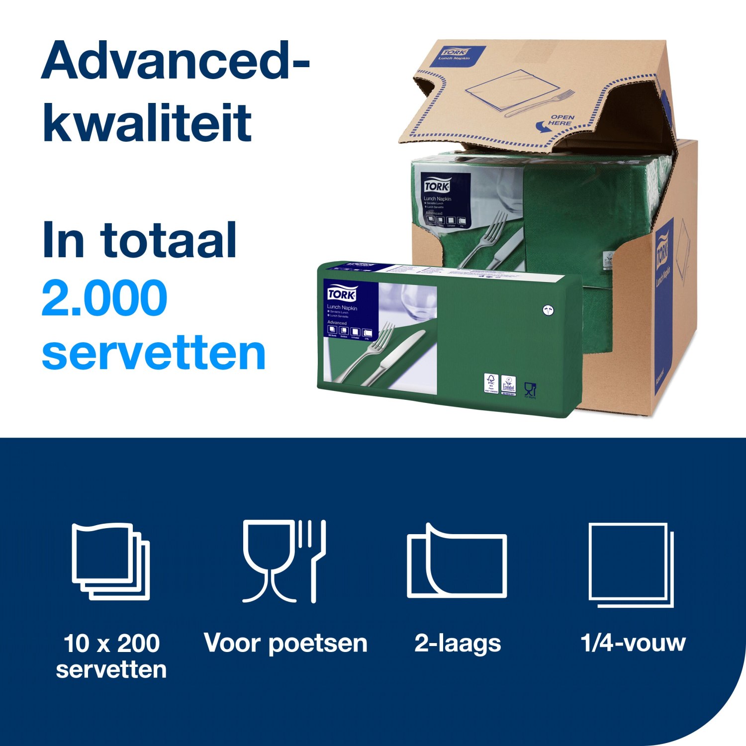 Tork Lunchservet – Advanced – 33x33cm – 1/4-vouw – 2-laags – Donkergroen
