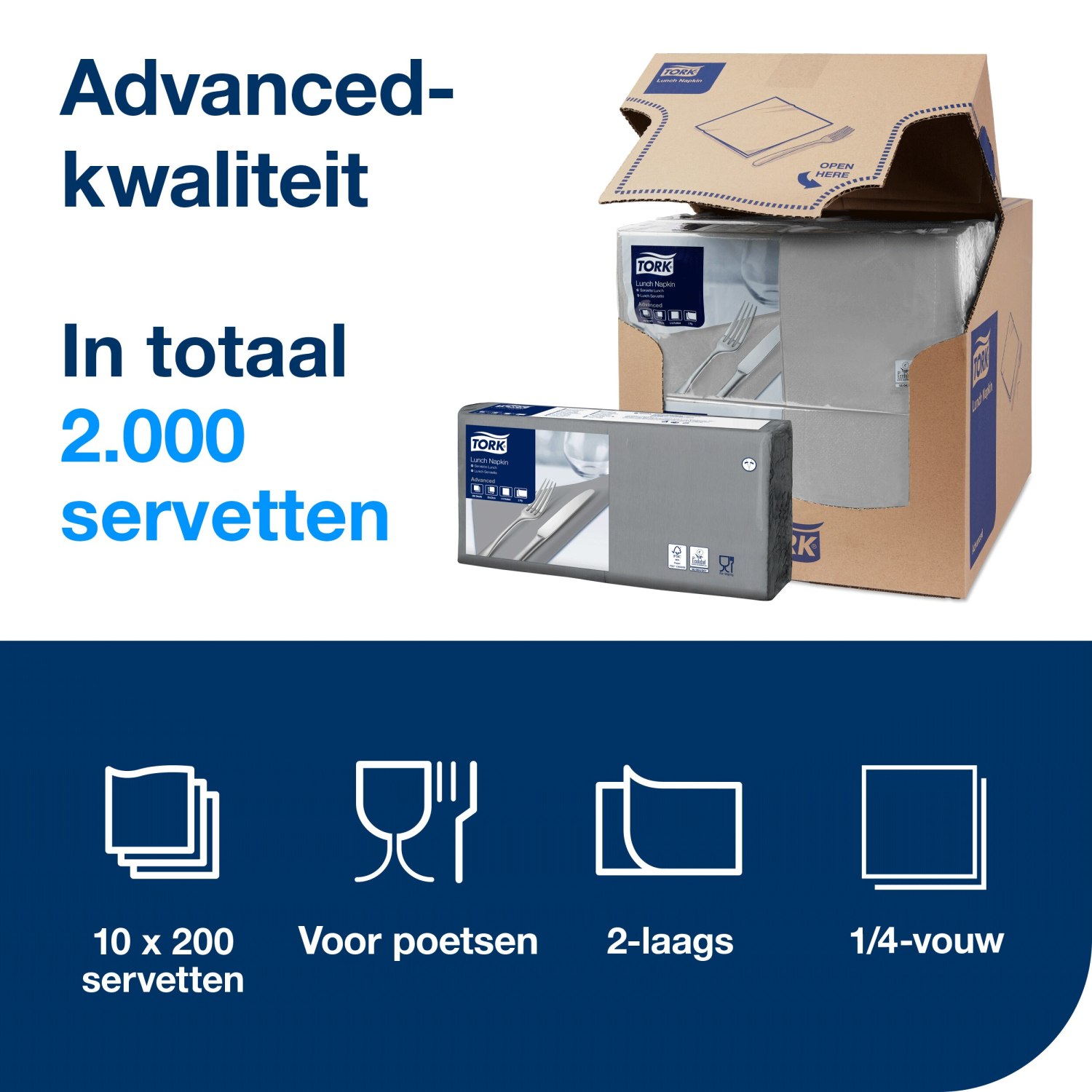 Tork Lunchservet – Advanced – 2-laags – Grijs