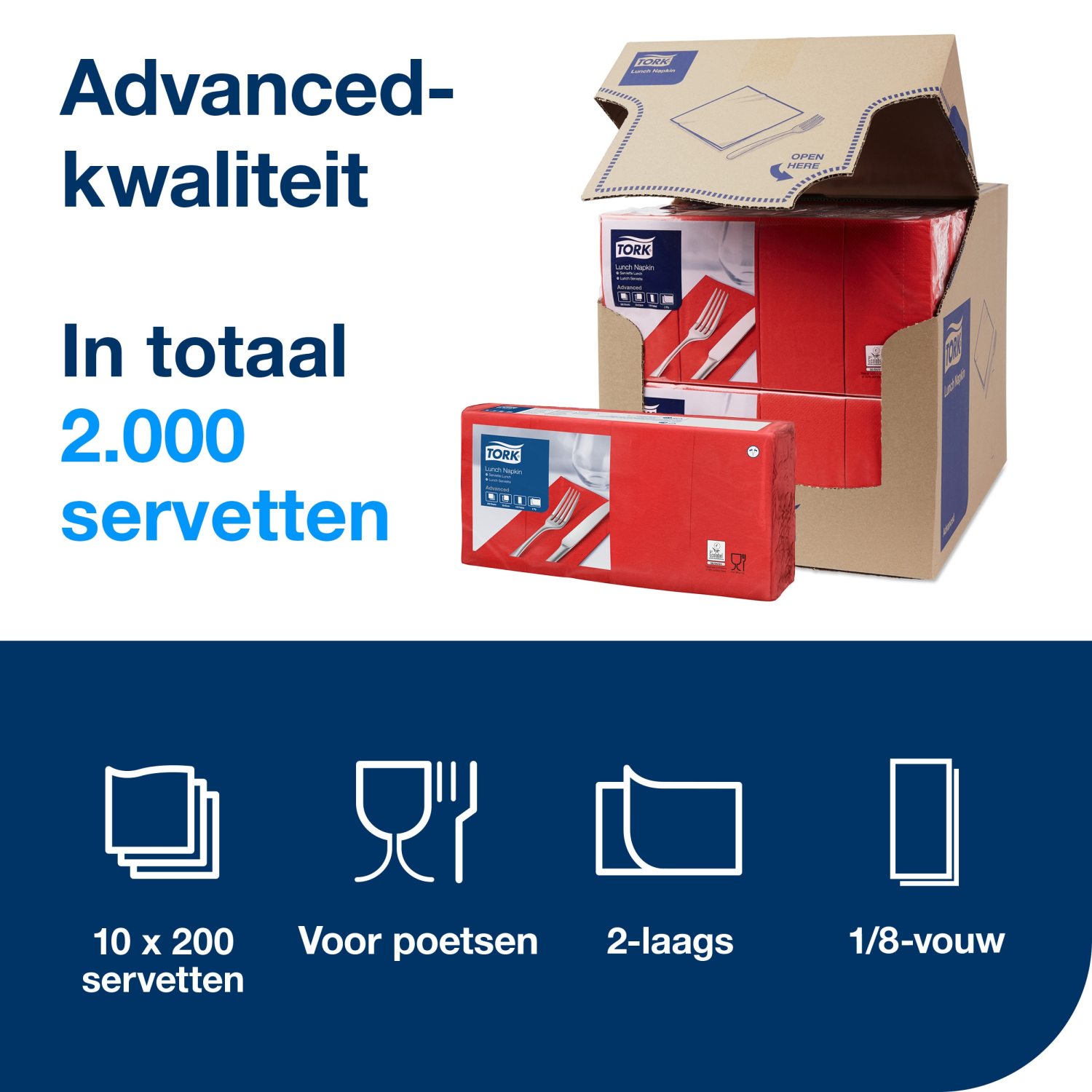 Tork Lunchservetten: duurzame 2-laags servetten voor horeca.