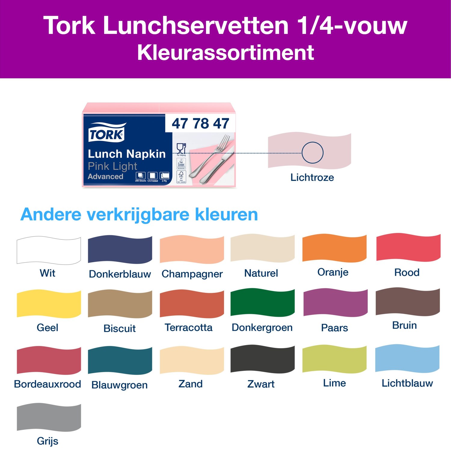 De Tork Lunchservetten zijn de perfecte keuze voor restaurants, cateringbedrijven en horecagelegenheden die lichte maaltijden en snacks serveren. Deze roze servetten zijn vervaardigd uit twee lagen en hebben een handige 1/4-vouw, waardoor ze eenvoudig te gebruiken zijn. Bij uitvouwen hebben de servetten een afmeting van 33 x 33 cm, wat zorgt voor voldoende oppervlak voor verschillende toepassingen.