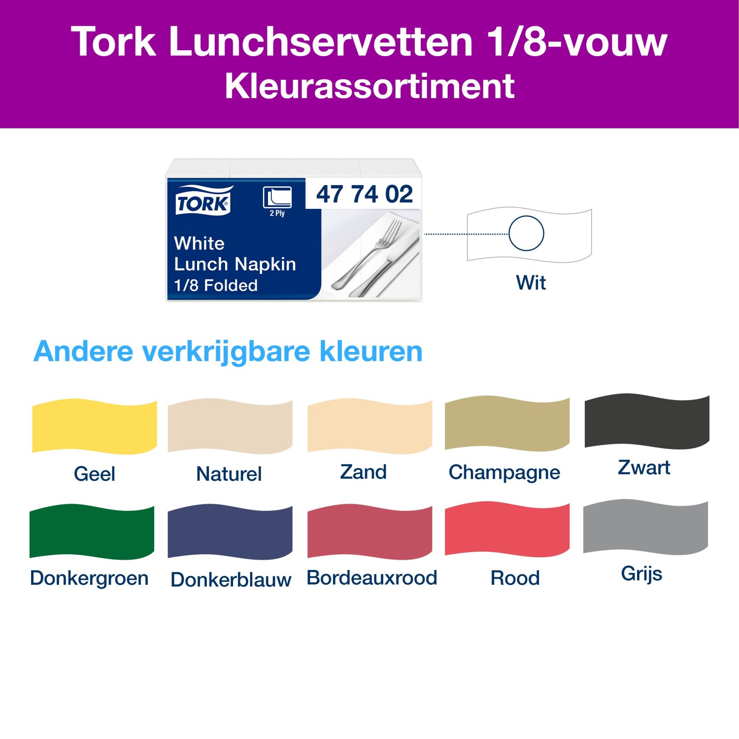 De Tork Lunchservetten zijn de perfecte keuze voor restaurants, cateringbedrijven en horecagelegenheden die lichte maaltijden en snacks serveren. Deze zwarte servetten zijn vervaardigd uit twee lagen en hebben een praktische 1/4-vouw, waardoor ze eenvoudig te gebruiken zijn. Uitgevouwen hebben de servetten een afmeting van 33 x 33 cm, wat zorgt voor voldoende ruimte voor diverse gerechten.