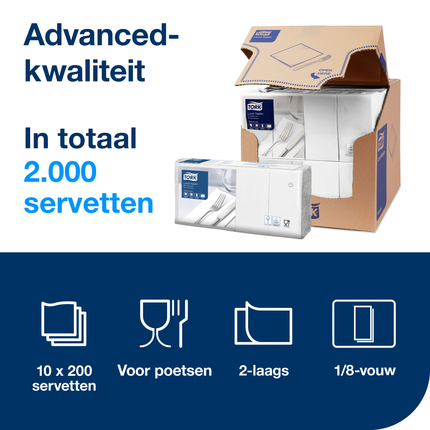 Tork Lunchservet – Advanced – 33x33cm – 1/8-vouw – 2-laags – Wit