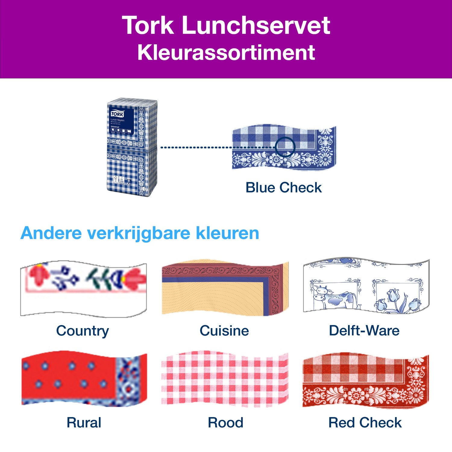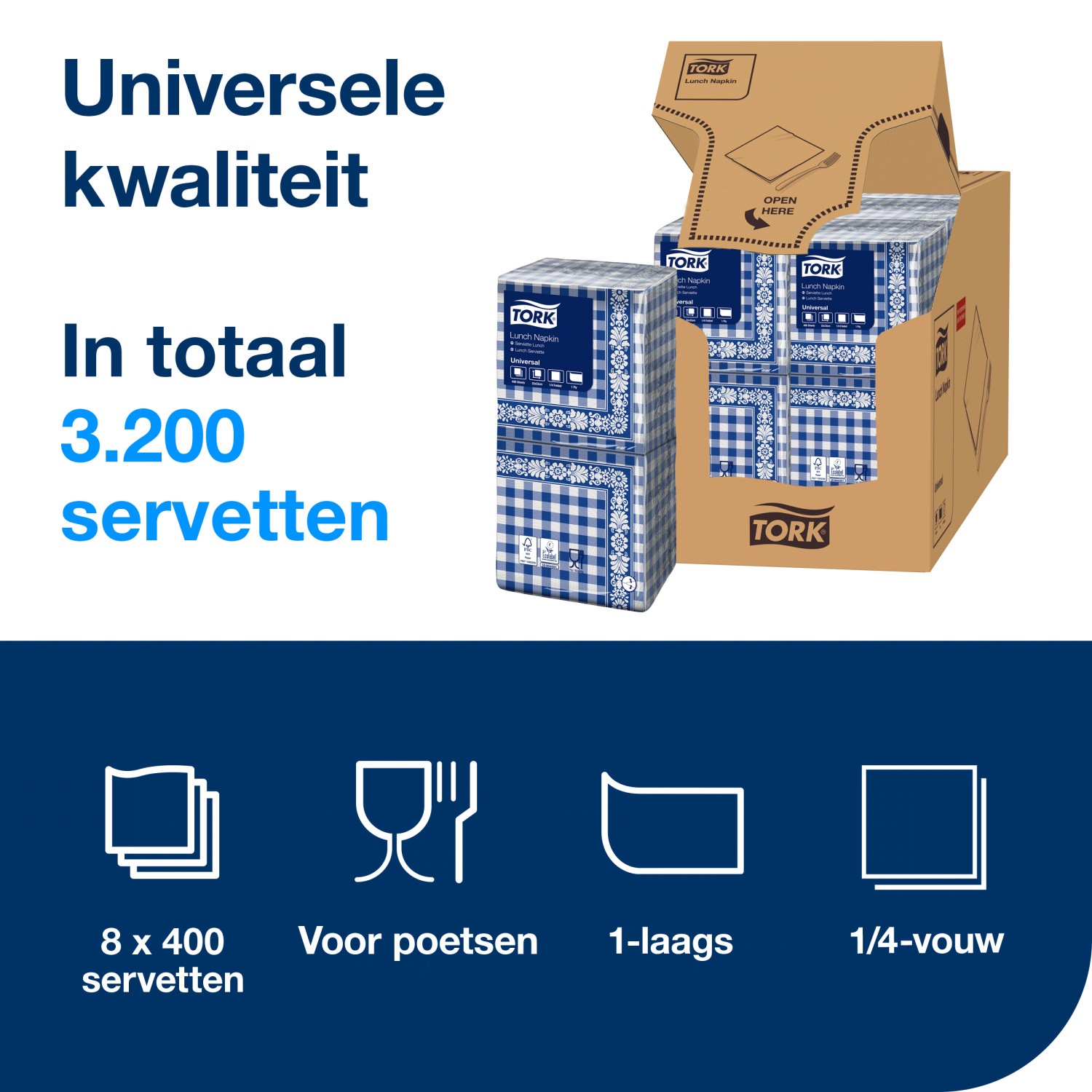 Tork Lunchservet – Blue Check – 1-laags – Decor