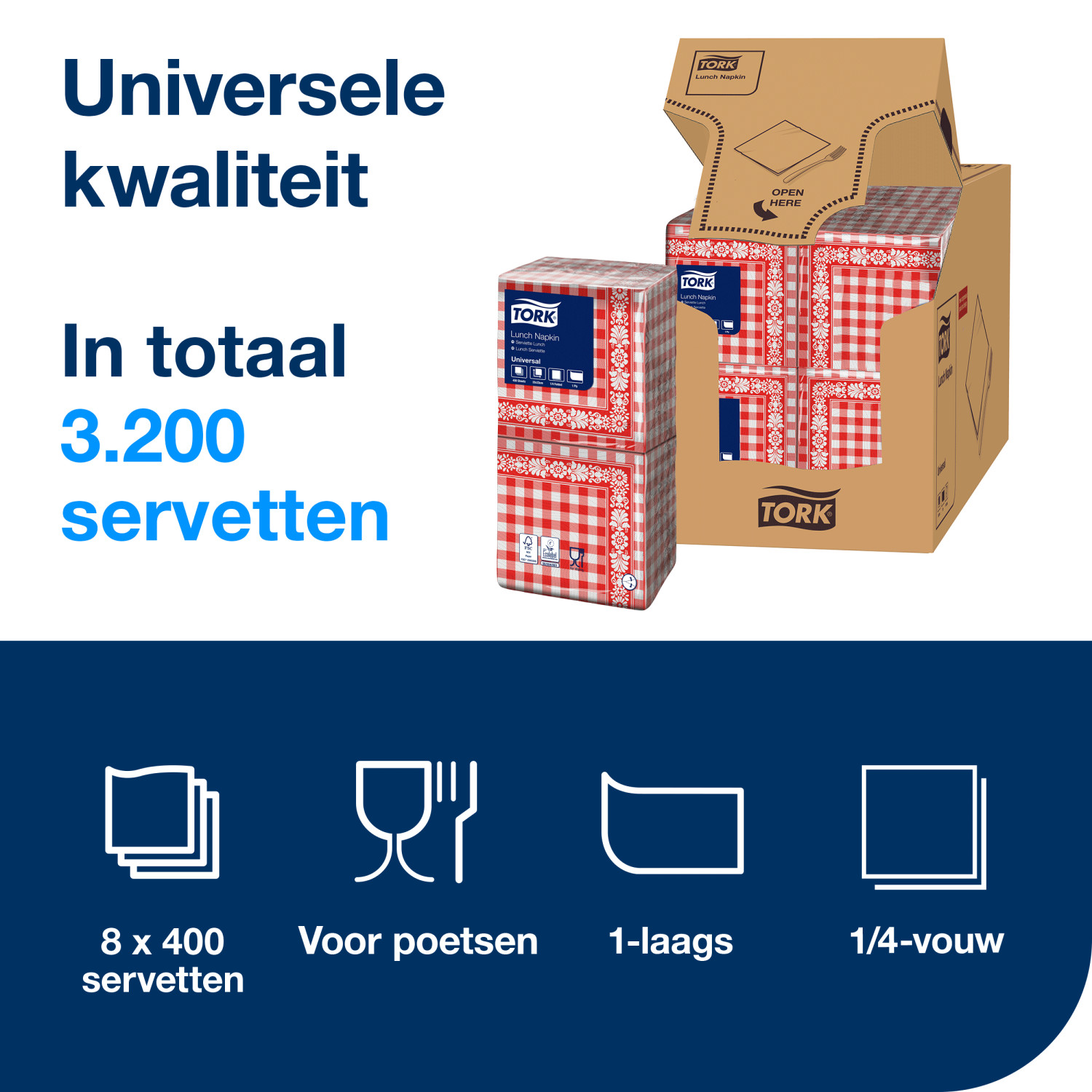 Beperk uw kosten zonder in te boeten op kwaliteit met onze eenlaagse papieren servetten van Tork. Deze servetten zijn speciaal ontworpen voor fastfoodrestaurants en snackbars, met een kleiner formaat dat perfect aansluit bij de behoeften van uw gasten. Ze worden geleverd in een grootverpakking, zodat u altijd voldoende voorraad heeft en zich volledig kunt richten op de service aan uw klanten.